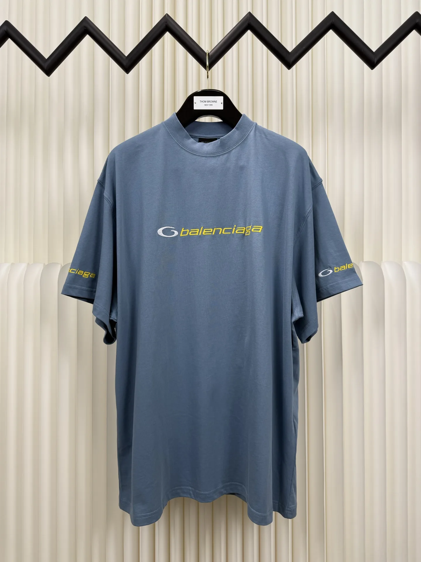 (Spitzenmodell, hochwertigste Version) Die Größen fallen groß aus. Klassisches gelbes Balenciaga-Logo, aufwendiger Druck, Rundhalsausschnitt, kurzärmeliges T-Shirt.