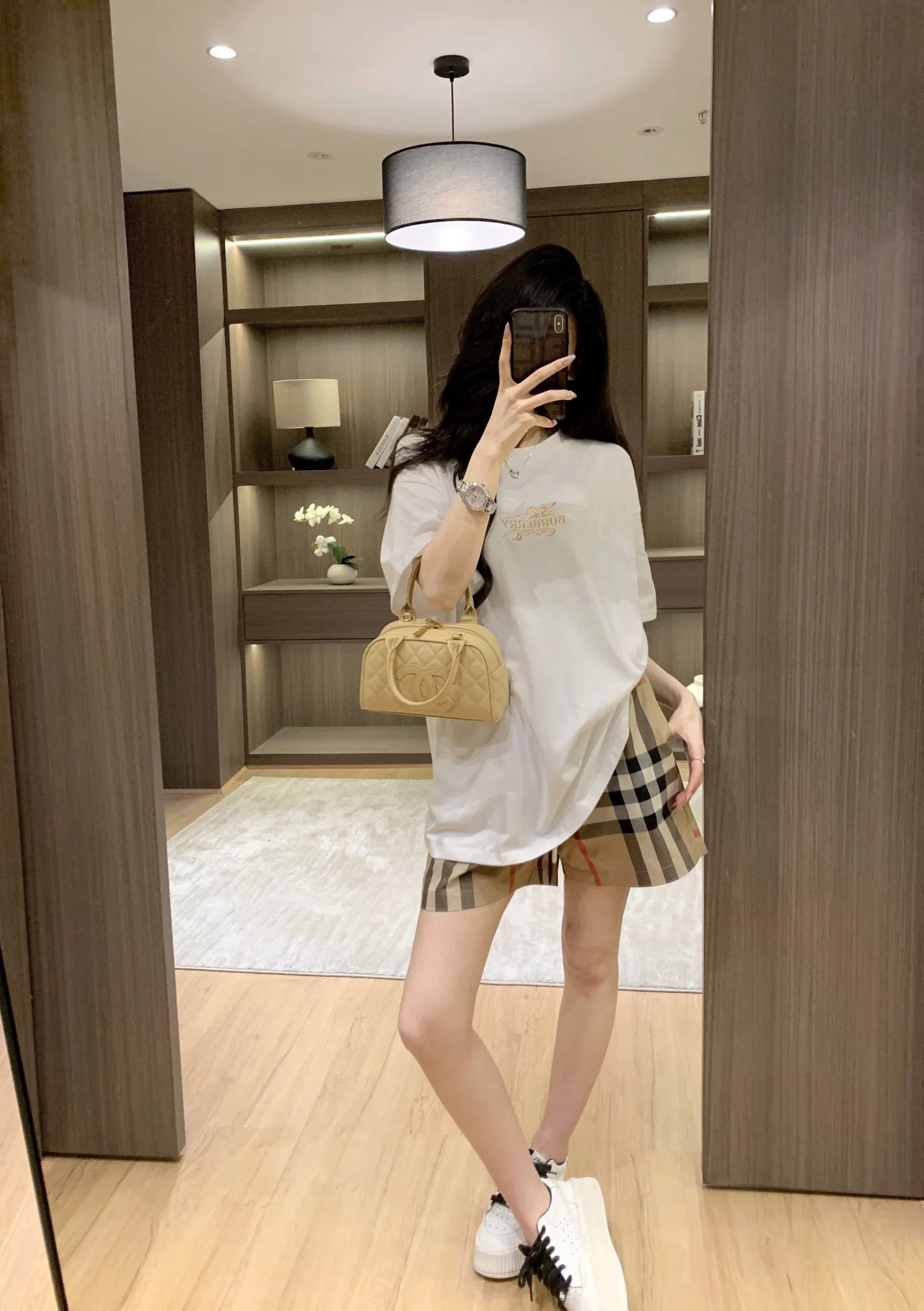 Burberry BBR-Set: Kurzarm-T-Shirt mit Rundhalsausschnitt, gesticktem Warhorse-Motiv vorne und hinten, elastischem Kordelzug in der Taille und karierten Shorts