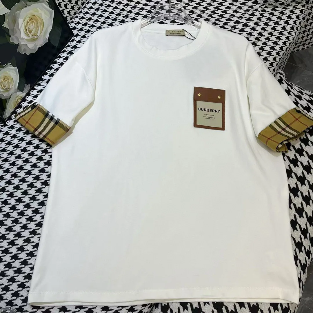 Premium Burberry Kurzarm Schwarz Leder Plaid Style