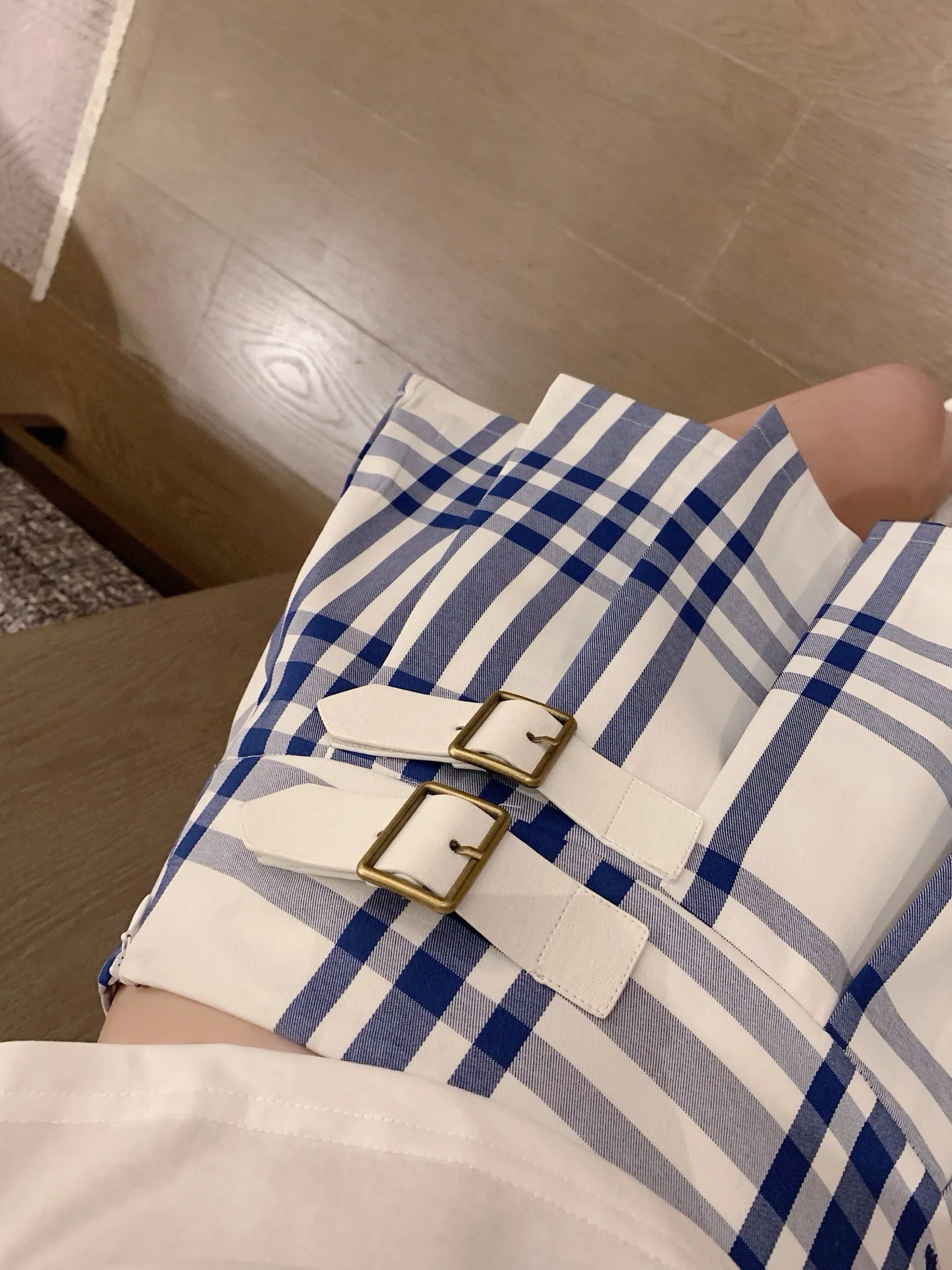 Burberry BBR Warhorse – Karierter Faltenrock mit bestickter Gürtelschnalle