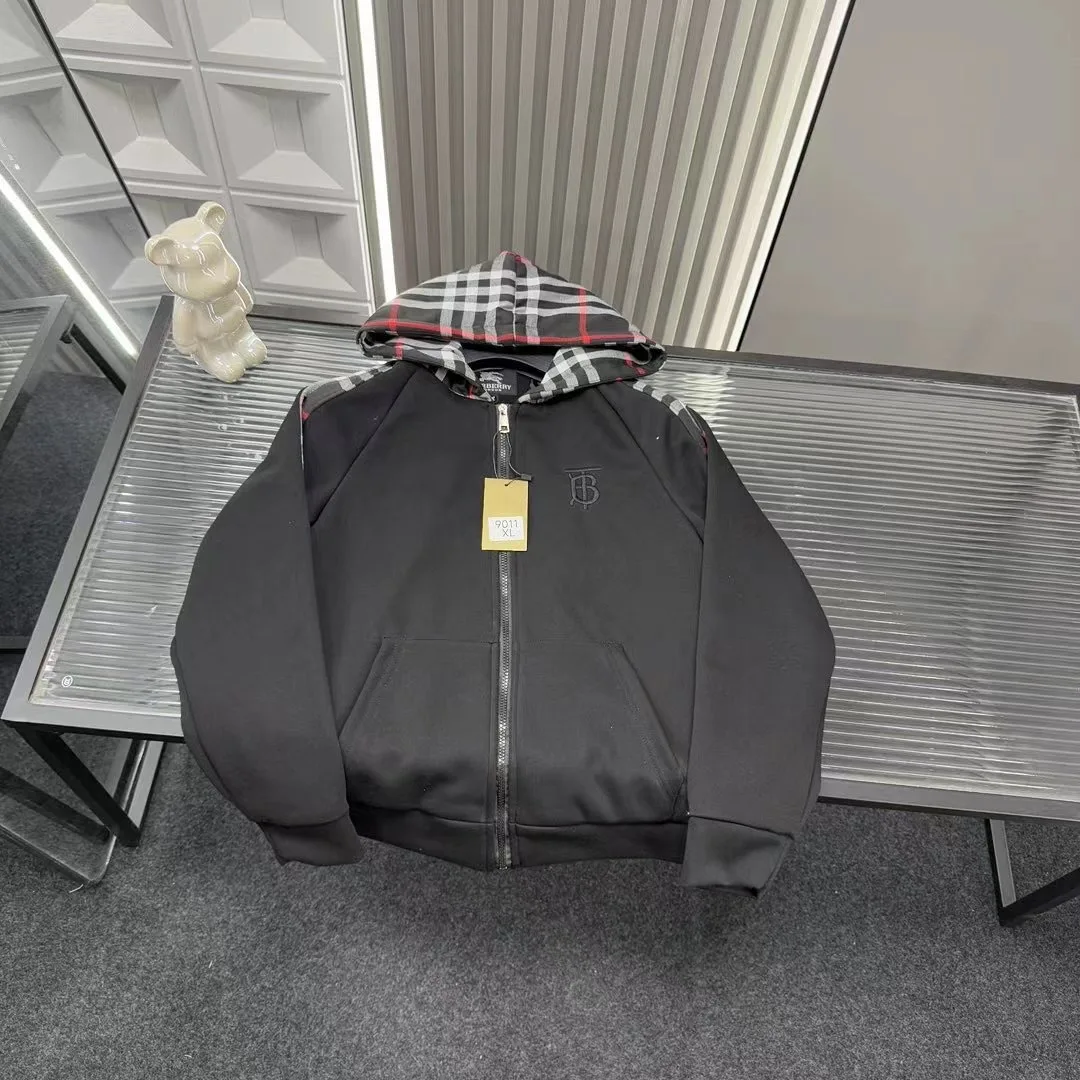 Empfohlene Oberbekleidung für den Frühherbst: Burberrys Patchwork-Kapuzenjacke mit kariertem Patchwork und gesticktem Logo. Alle drei Labels sind identisch mit denen auf der offiziellen Website. Zoomen Sie hinein, um Details zu sehen. Foto mit der Originalkamera aufgenommen.