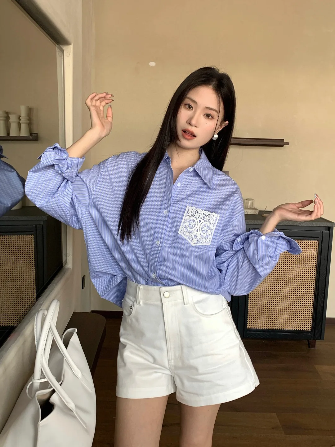 CE*Celin Arc de Triomphe Spitzenhemd mit Tasche. Locker und entspannt, für einen lässigen Boyfriend-Look. Die Spitzenakzente verleihen einen Hauch von Weiblichkeit.