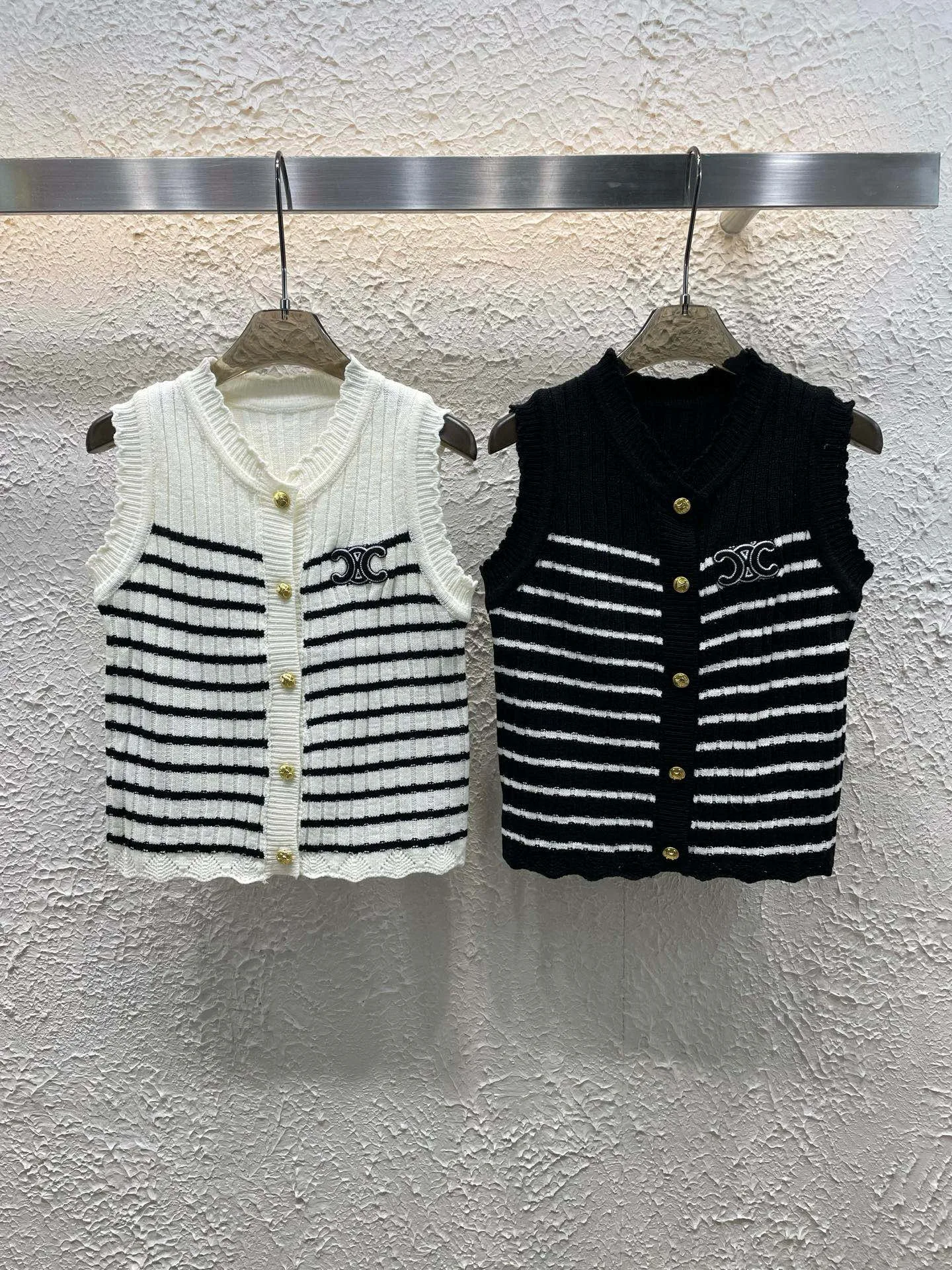 Premium Celine Weste im Goldstrick-Stil mit Stickerei