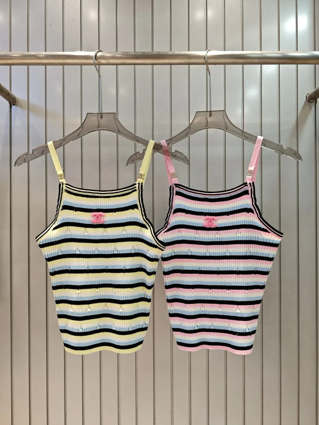 Chanel 3D-Doppel-C-Strick-Camisole mit Colorblock-Streifen