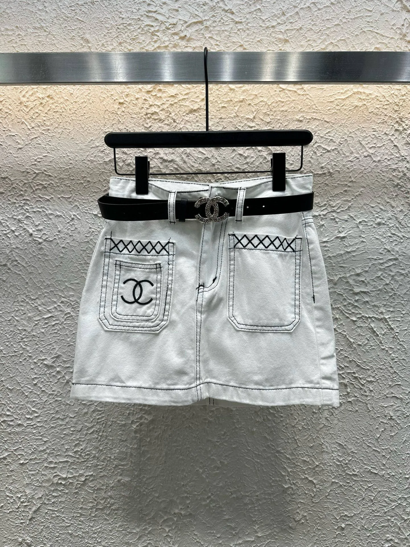 Premium Chanel Kurzer Rock Weißer Denim Bestickter Luxus