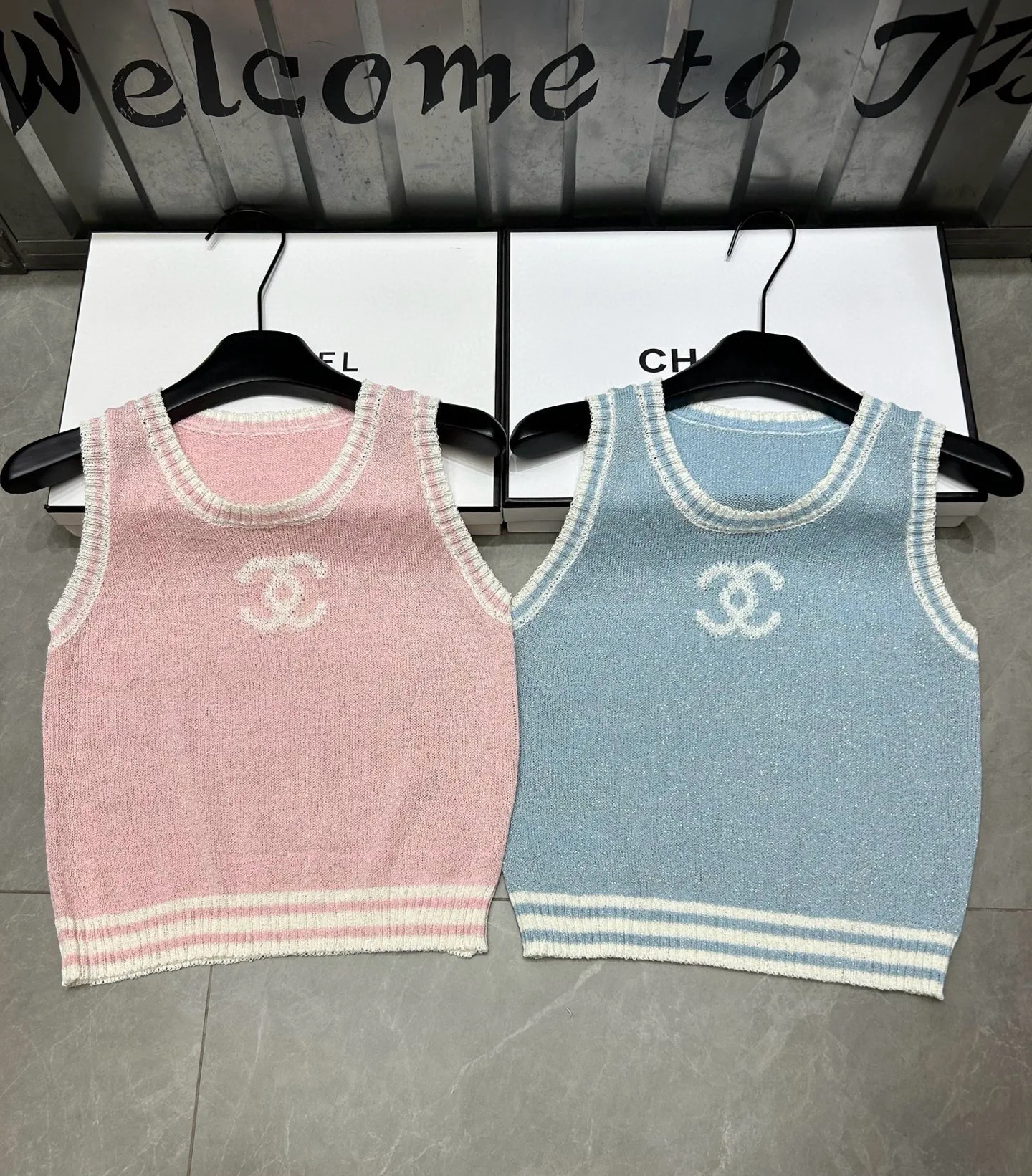 Premium Chanel Weste im rosa Jacquard-Strickstil
