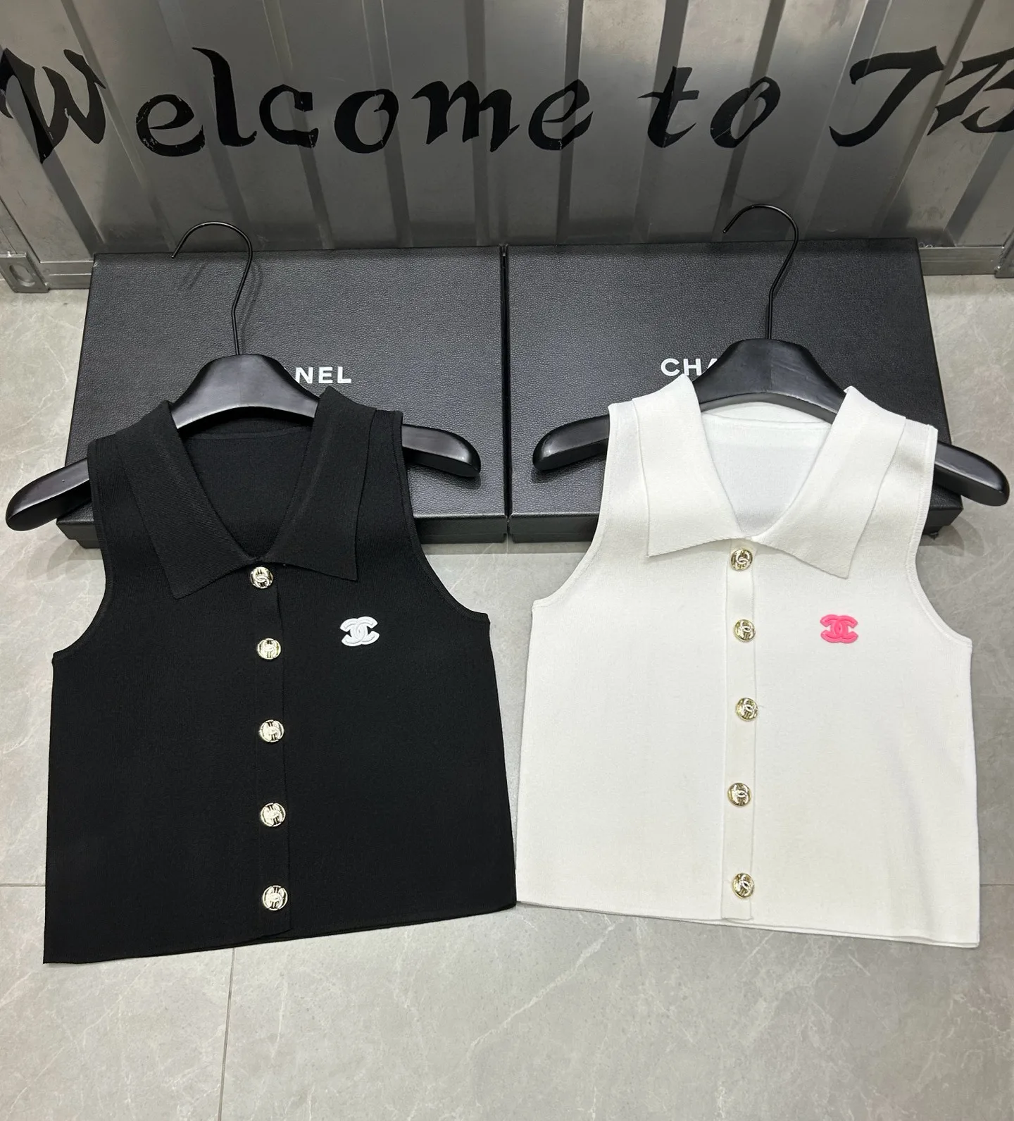 Chanel Custom Strickweste mit Knopfverschluss und Doppel-C-Revers