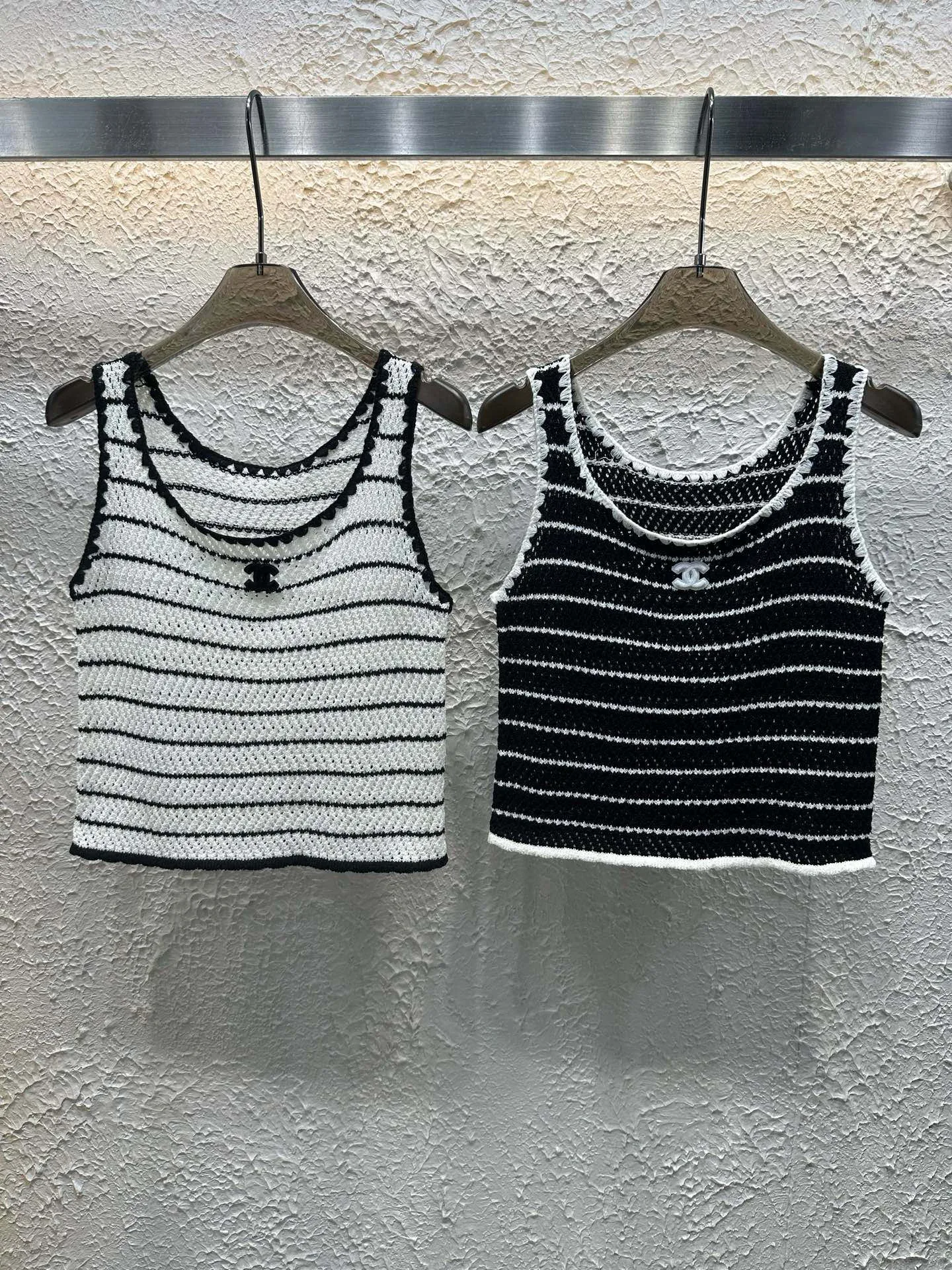 Premium Chanel Weste Weiß Strick Gestreift Luxus