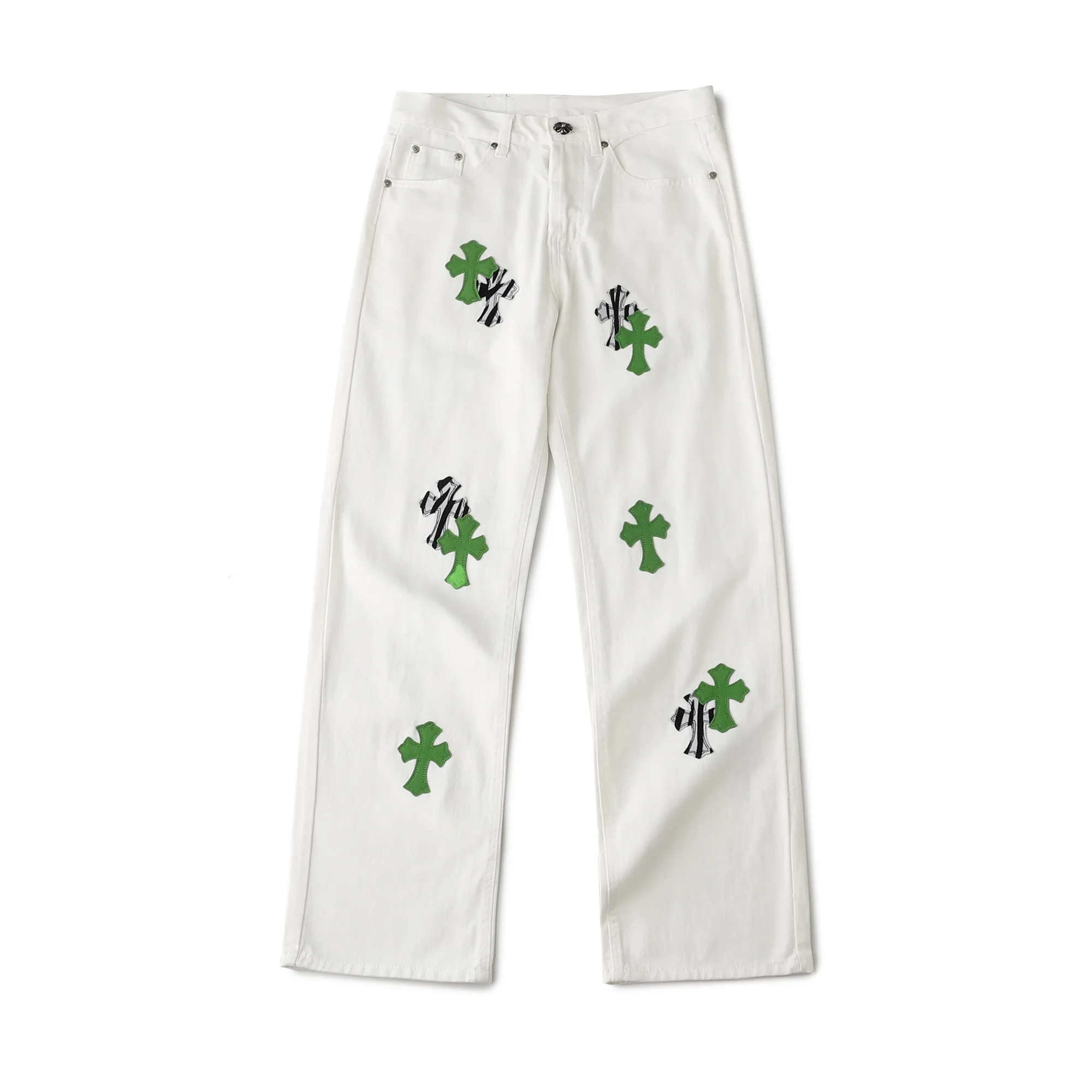 Premium Chrome Hearts Jeans Weiß Leder Style
