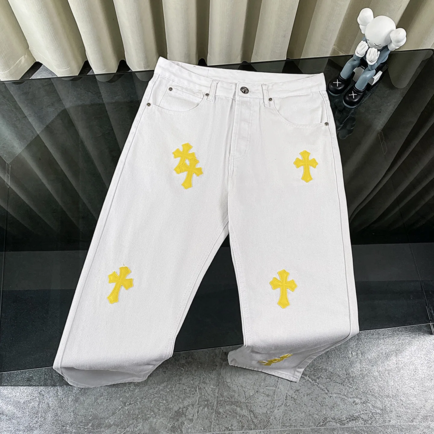 Chroe Hets CH Jeans mit weißen und gelben Lederpatches