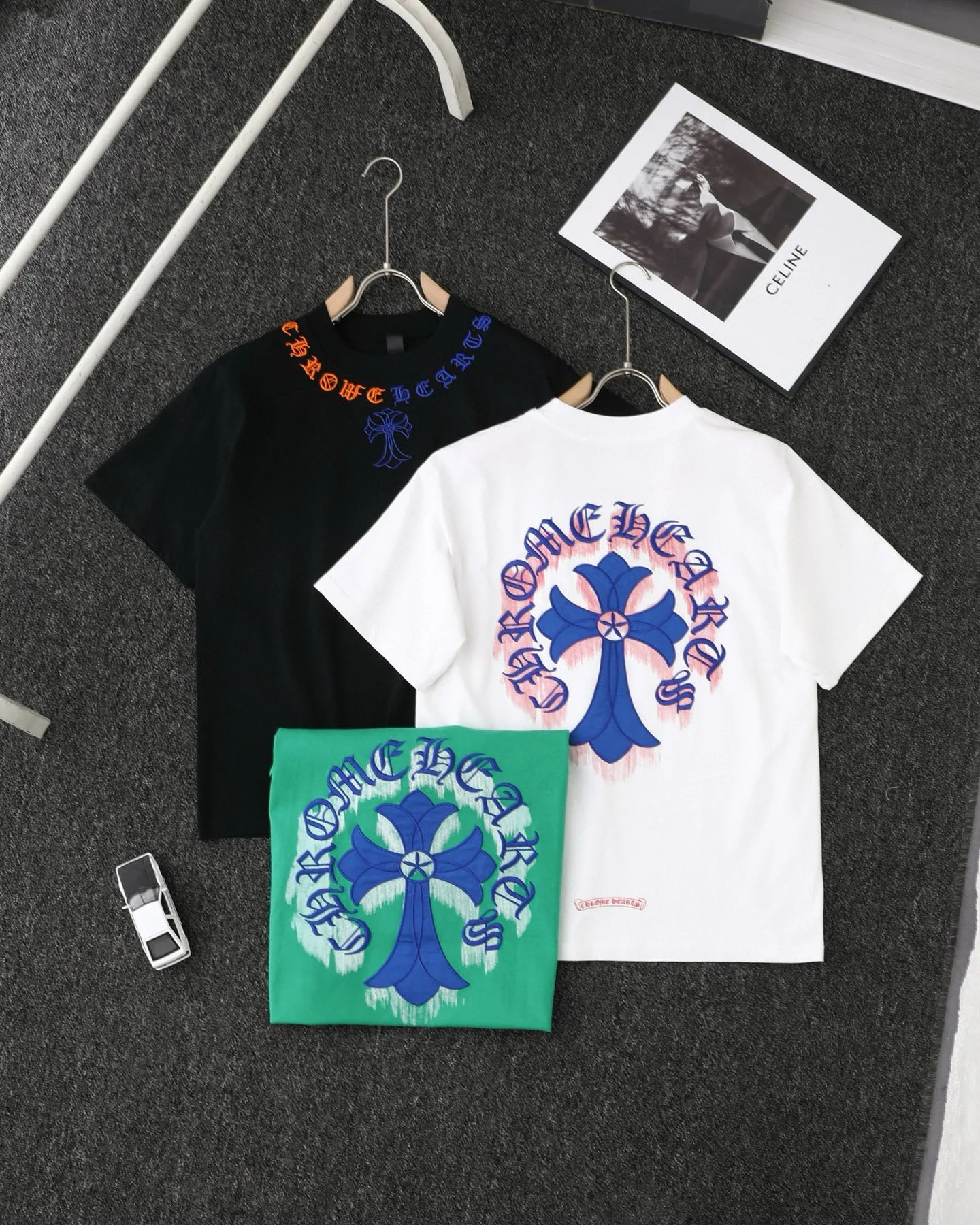 Premium-T-Shirt, starke Neuerscheinung! Chrome Hearts S/S Heavy-Duty Cross Rundhals-T-Shirt mit Sanskrit-Stickerei und Halskette. Artikelnummer: