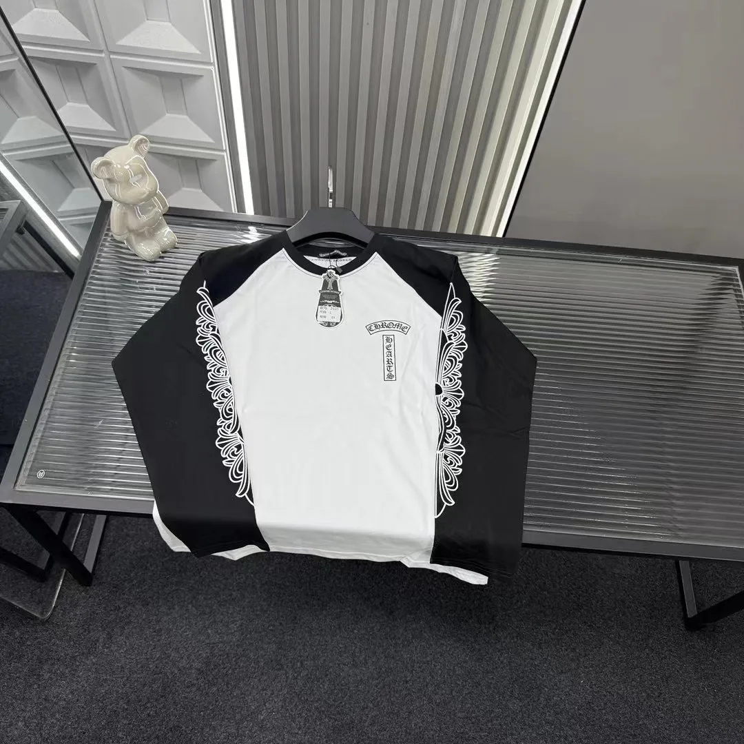 Empfohlenes neues Langarmshirt mit Chrome Hearts-Farbblock-Print und Logo mit Kreuzträgern. Alle drei Etiketten sind identisch mit denen auf der offiziellen Website. Zoomen Sie hinein, um Details zu sehen. Foto mit der Originalkamera aufgenommen.