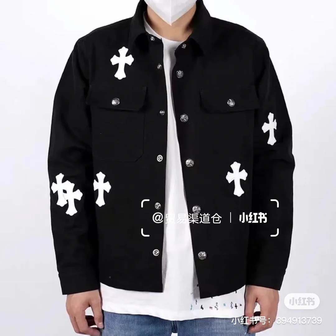 CH Chromehearts SS Denim Cross Leather Schwarz-Weiß-Jacke