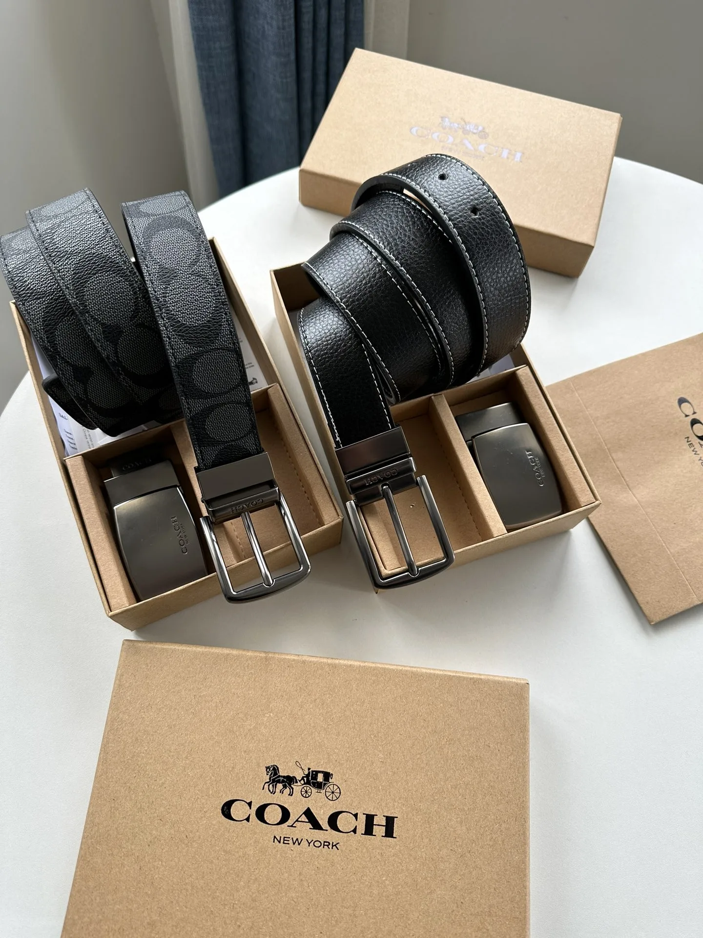 Seriennr.: Coach Echtledergürtel mit Doppelschnalle, doppelseitige Geschenkbox
