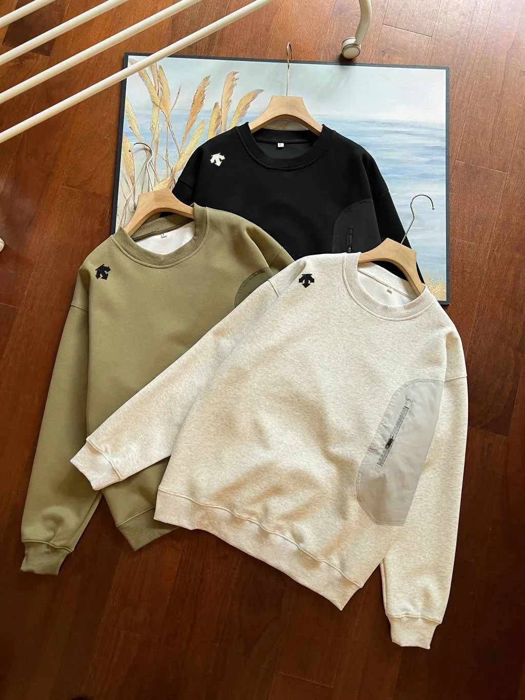 Die neue Frühlingskollektion von SCENTE präsentiert einen Pullover mit Reißverschlusstasche und Rundhalsausschnitt im lockeren, lässigen Unisex-Design. Dieser Rundhalspullover ist perfekt für Paare.