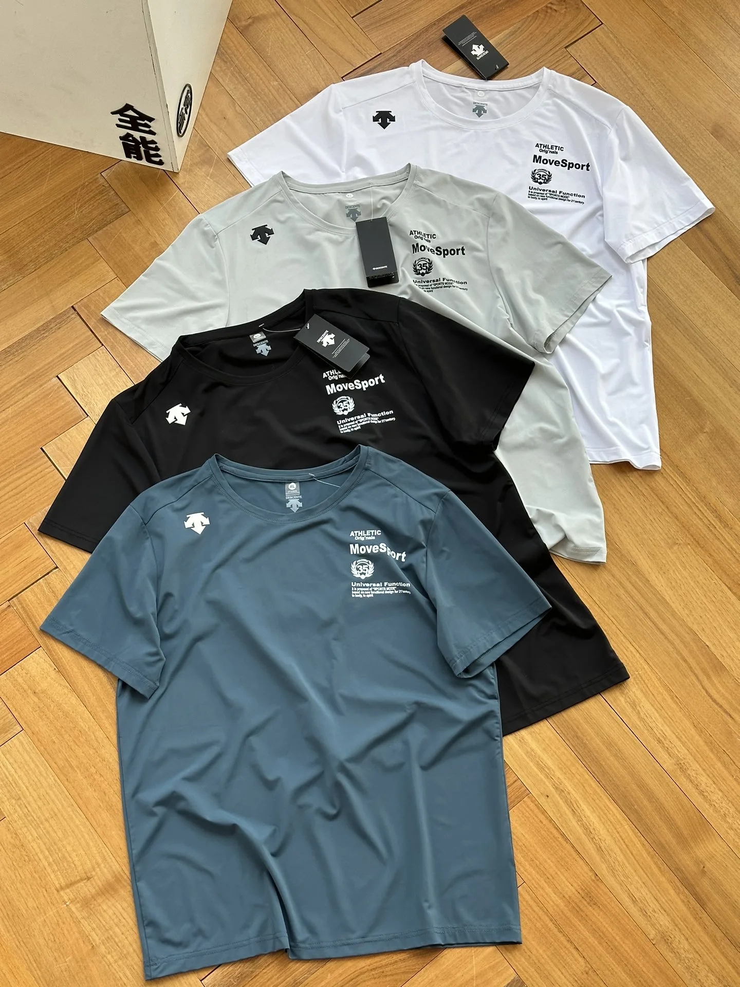 DESCENTE Kurzarm-T-Shirt aus schnelltrocknender Eisseide mit Brustaufdruck, Unisex