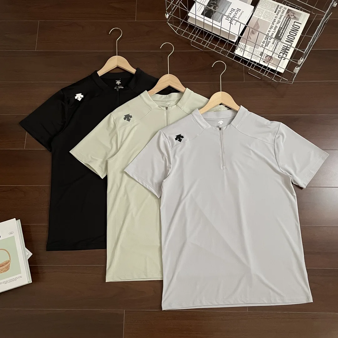 DESCENTE High-Stretch-Schnelltrocknungstechnologie Halbreißverschluss Sommer-High-Performance-Kurzarm-T-Shirt
