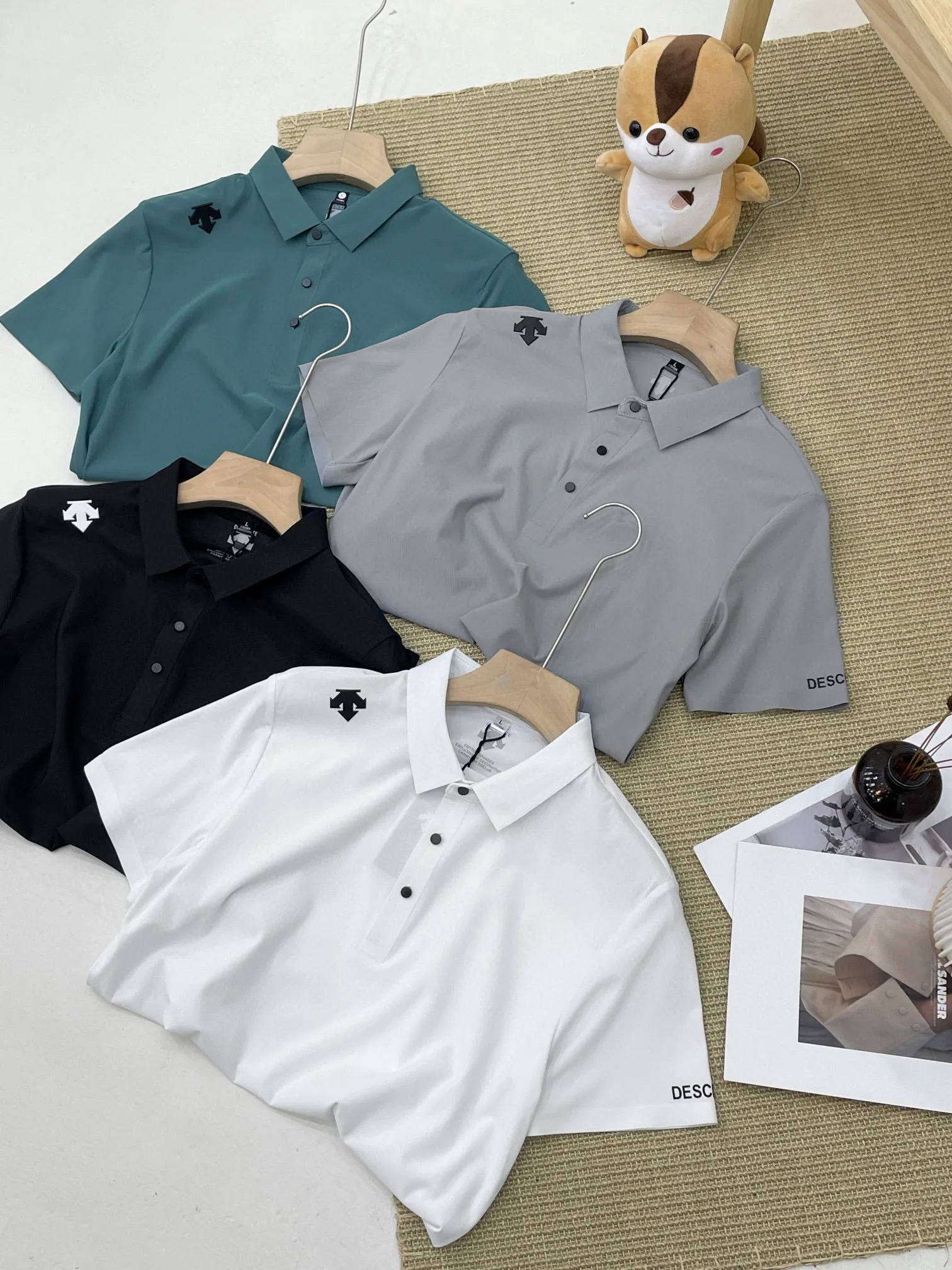 DESCENTE Sommer Business Casual Kurzarm-T-Shirt aus Ice Silk, Herren-Revers, hochwertiges, einfarbiges Kurzarm-T-Shirt