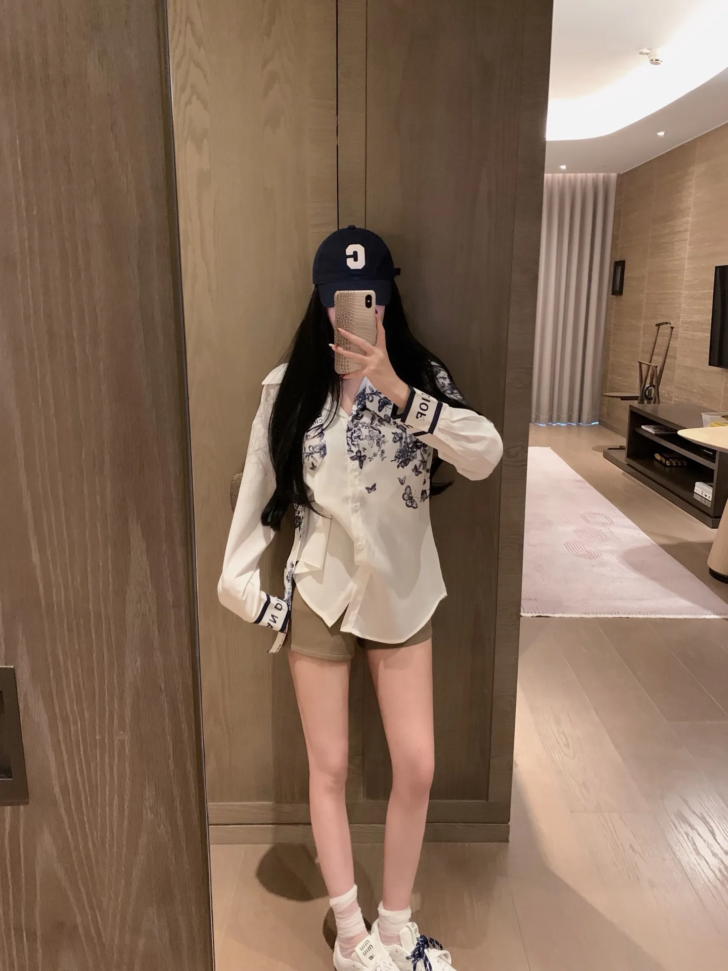 DIO* Dior Satin-Hemd mit Schleife im Positionsprint ~~ Größen: S M L