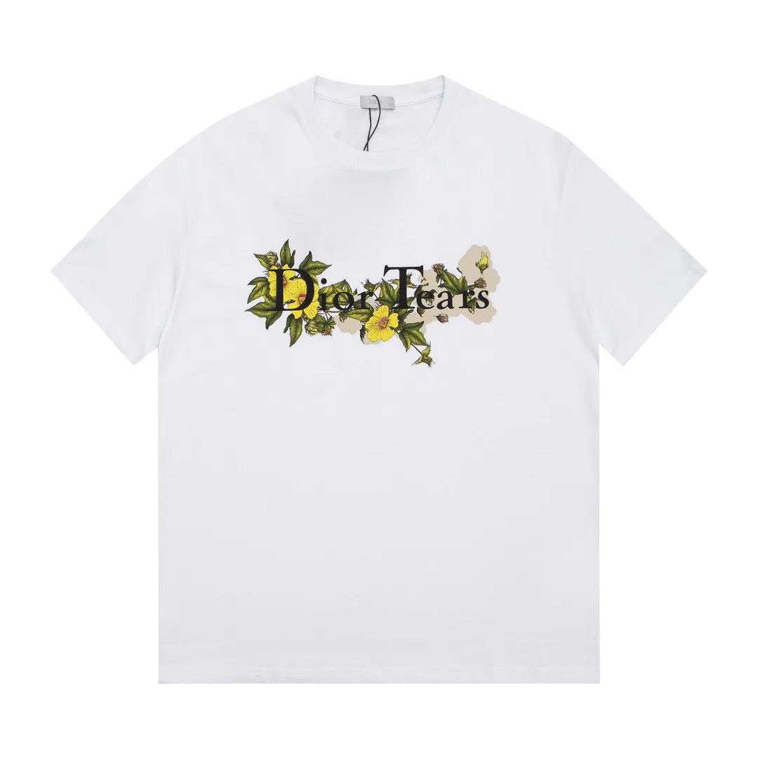 (Spitzenmodell, hochwertigste Ausführung) Dior Classic Gelbes Blumen-T-Shirt mit Rundhalsausschnitt und kurzen Ärmeln