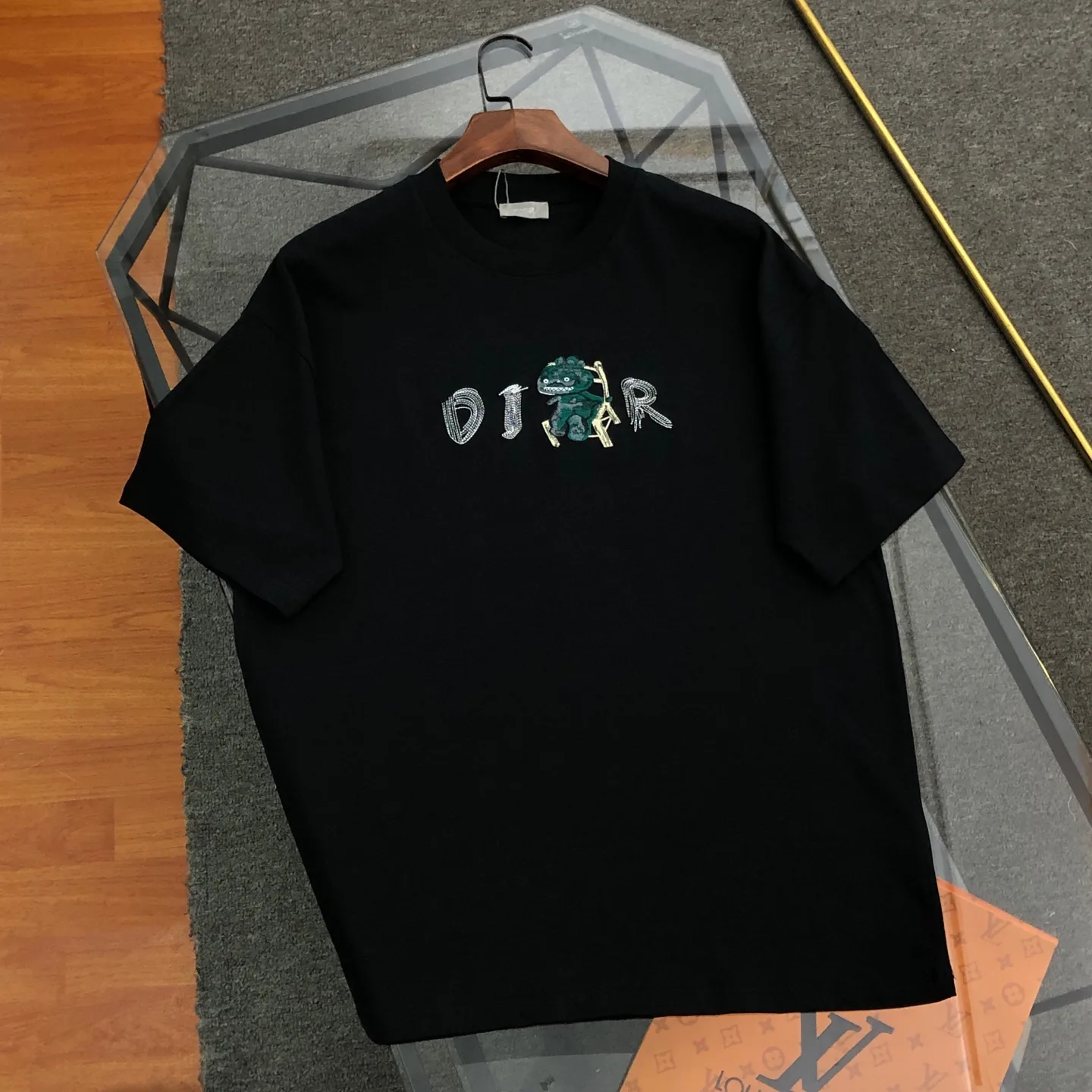 Premium Dior Kurzarm-Kollektion aus schwarzer Baumwolle mit Stickerei