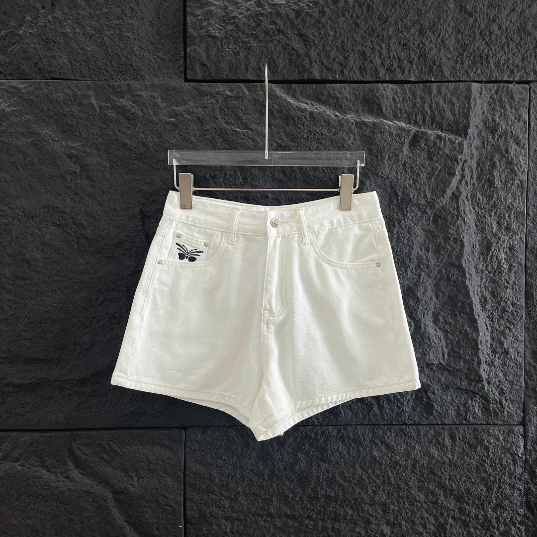 Premium Dior Shorts Kollektion aus weißem Leder mit Stickerei