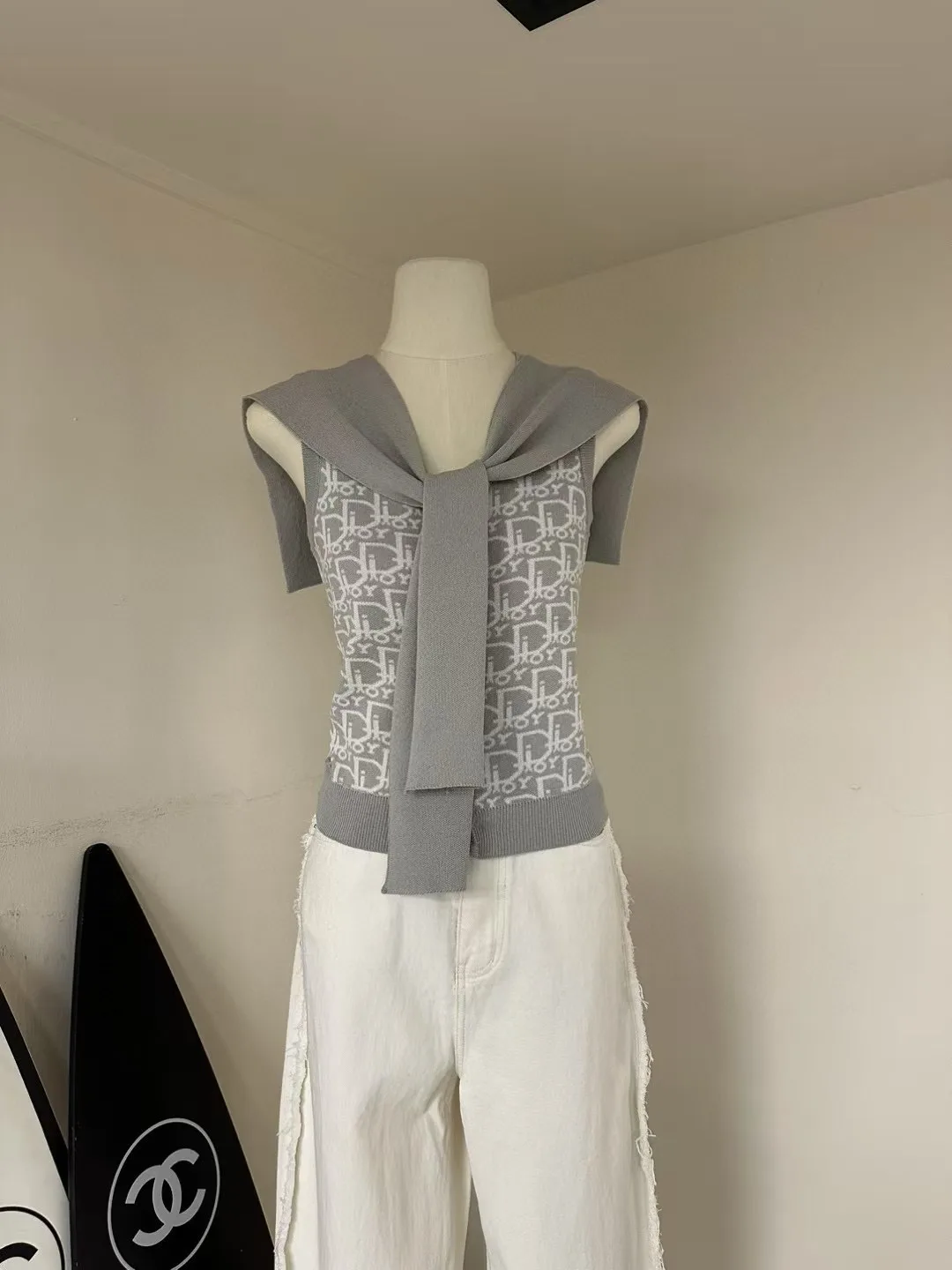 Premium Dior Weste Grau Strick Monogramm Kollektion