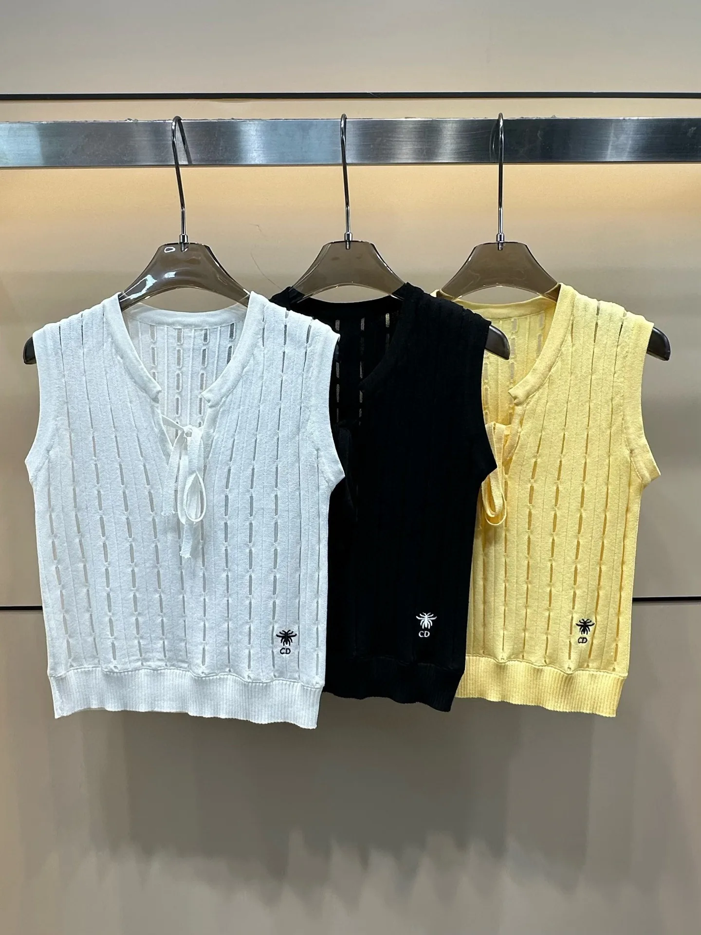 Dior CD Bee Strickweste mit Hohlsaum und Bindedetail