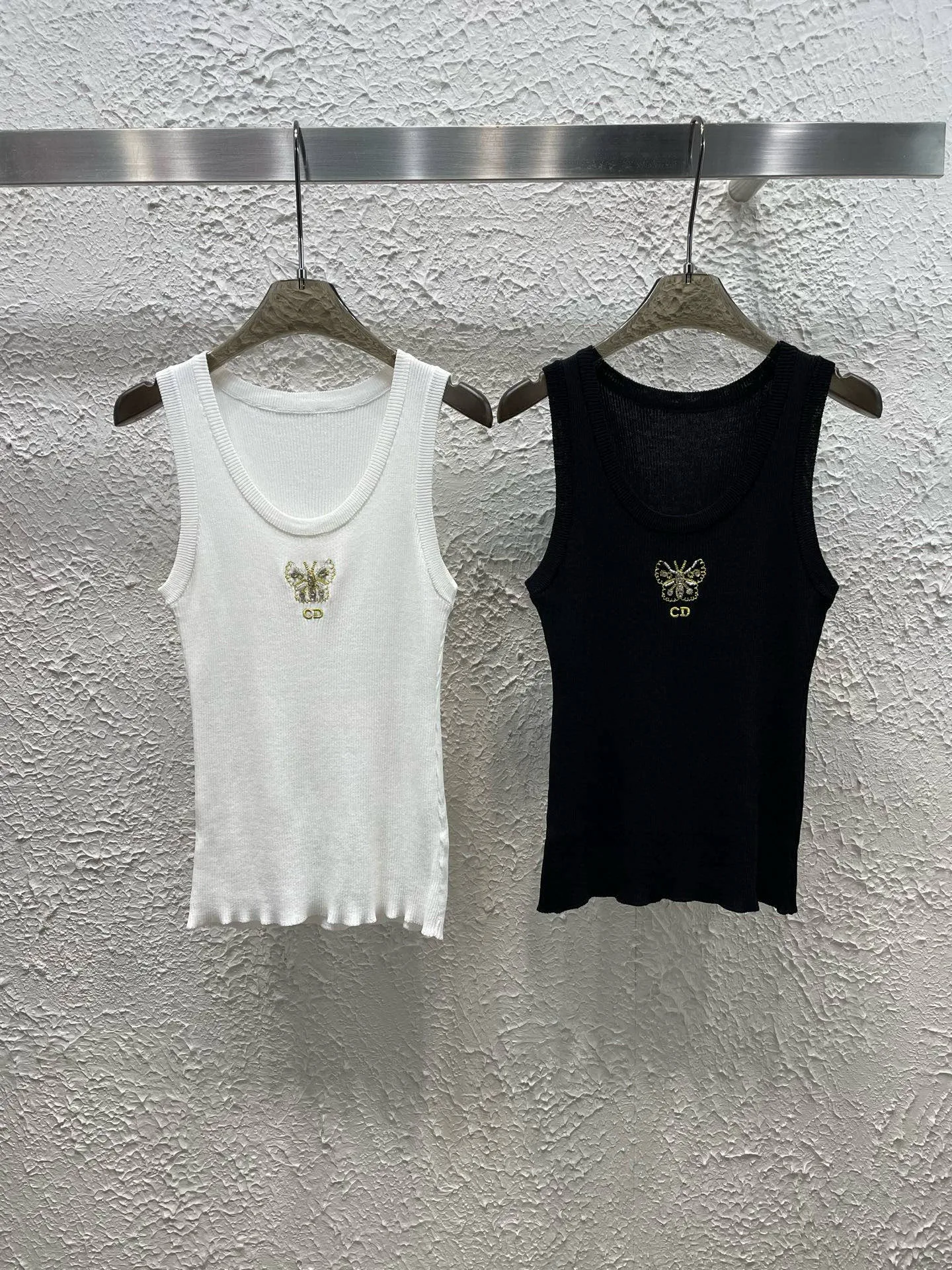 Premium Dior Weste im weißen Strick-Stil mit Stickerei