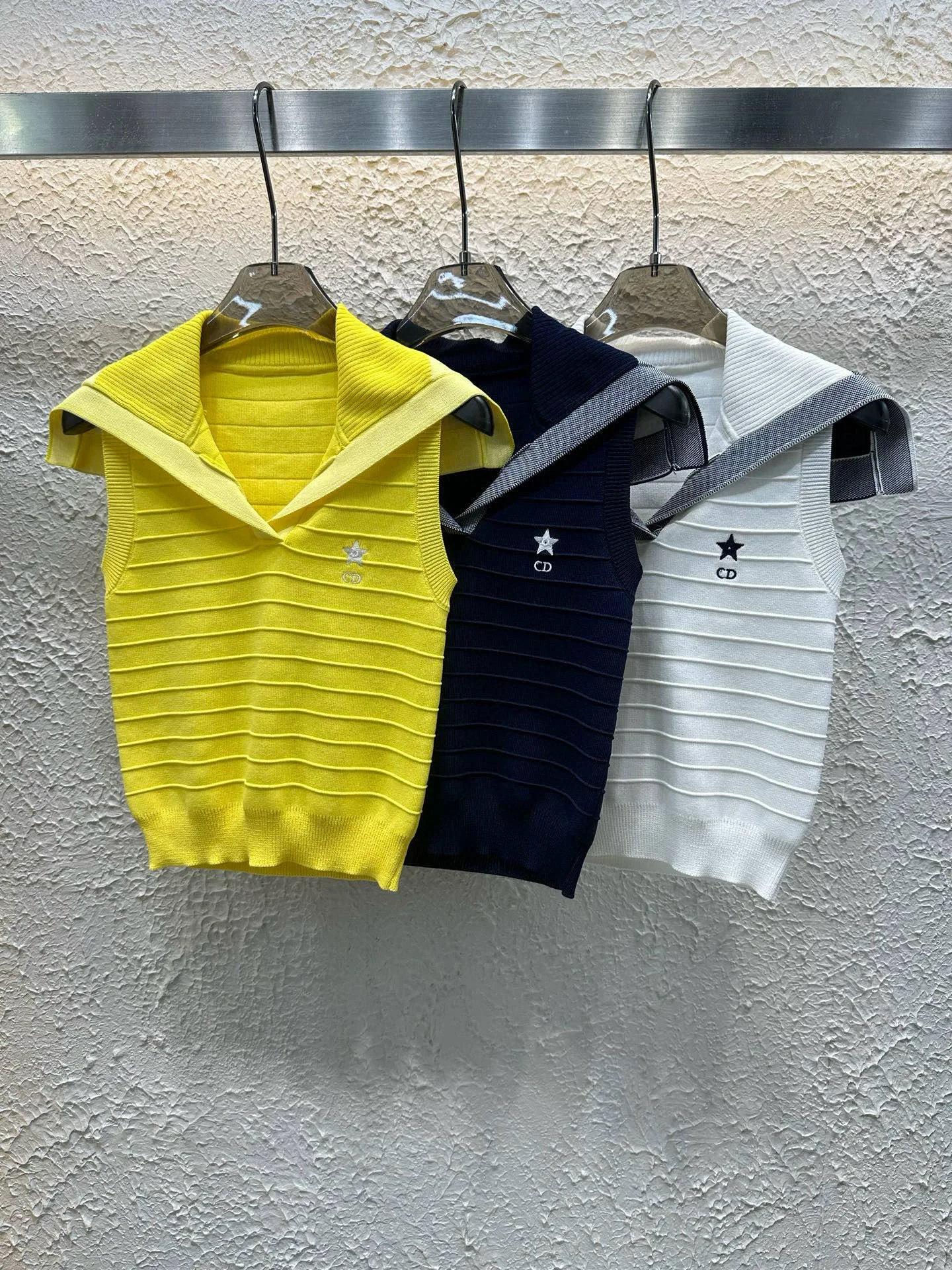 Premium Dior Weste, Marineblau, Strick, bestickt