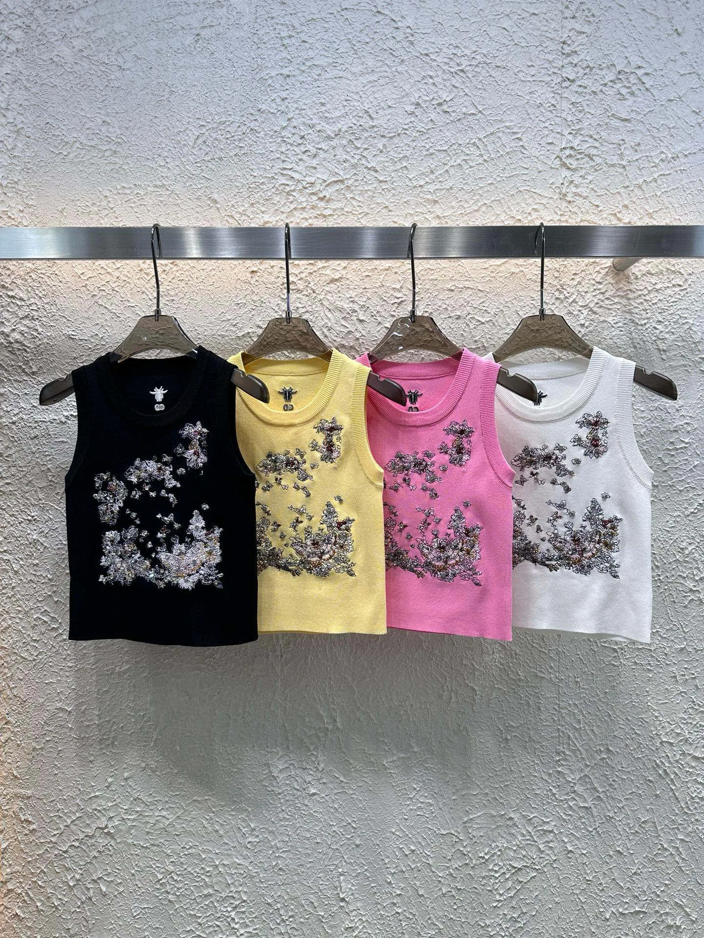 Dior CD Bee Rundhals-Strickweste mit floraler Diamantstickerei