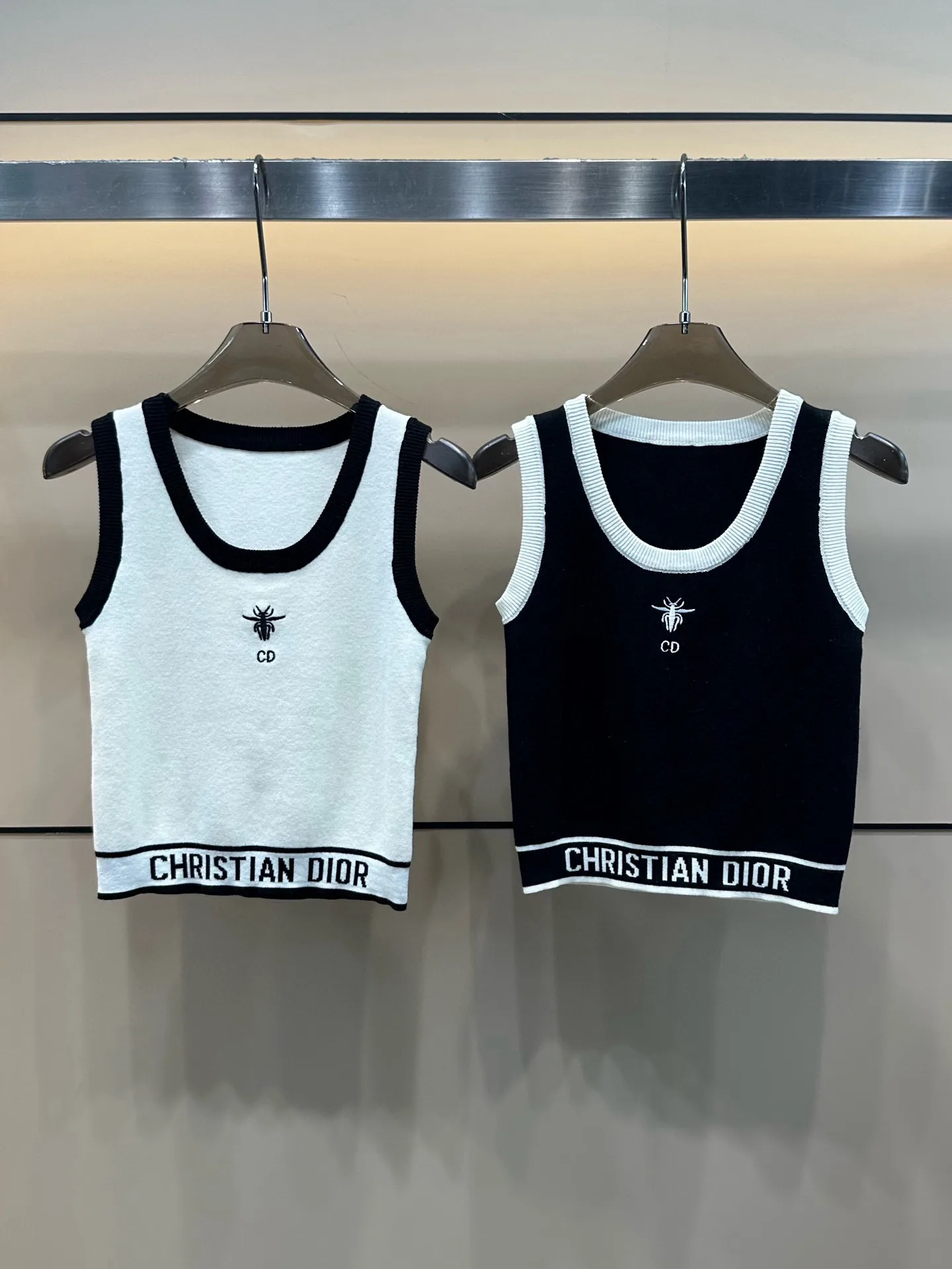 Premium Dior Weste Weißer Strick Bestickter Luxus