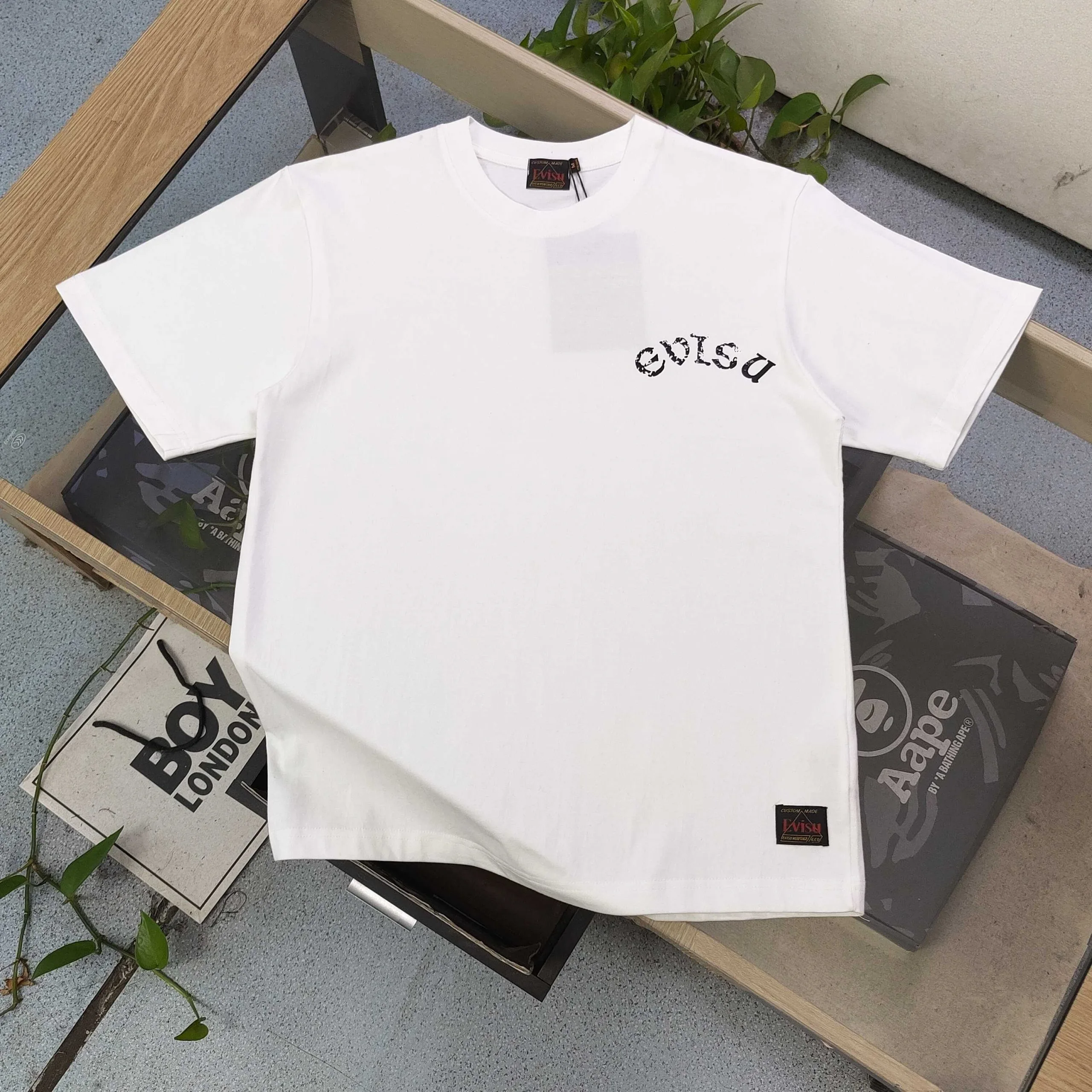 Neues, lässiges, kurzärmeliges T-Shirt für Paare mit dem „Lucky God Earth Tumbler“-Logo und -Schriftzug-Print von Evisu. Ein zeitloser Klassiker und ein Must-have. Aus 100 % gekämmter Baumwolle für Pilling- und Fusselfestigkeit – die Textur ist unübertroffen! Hergestellt mit umweltfreundlicher, importierter Druckpaste! Garantierte Qualität: Originalstoff, individuell gefärbt und mit einer umweltfreundlichen, abriebfesten Patina bedruckt. Vergleichen Sie die Qualität. Erhältlich für Herren und Damen!