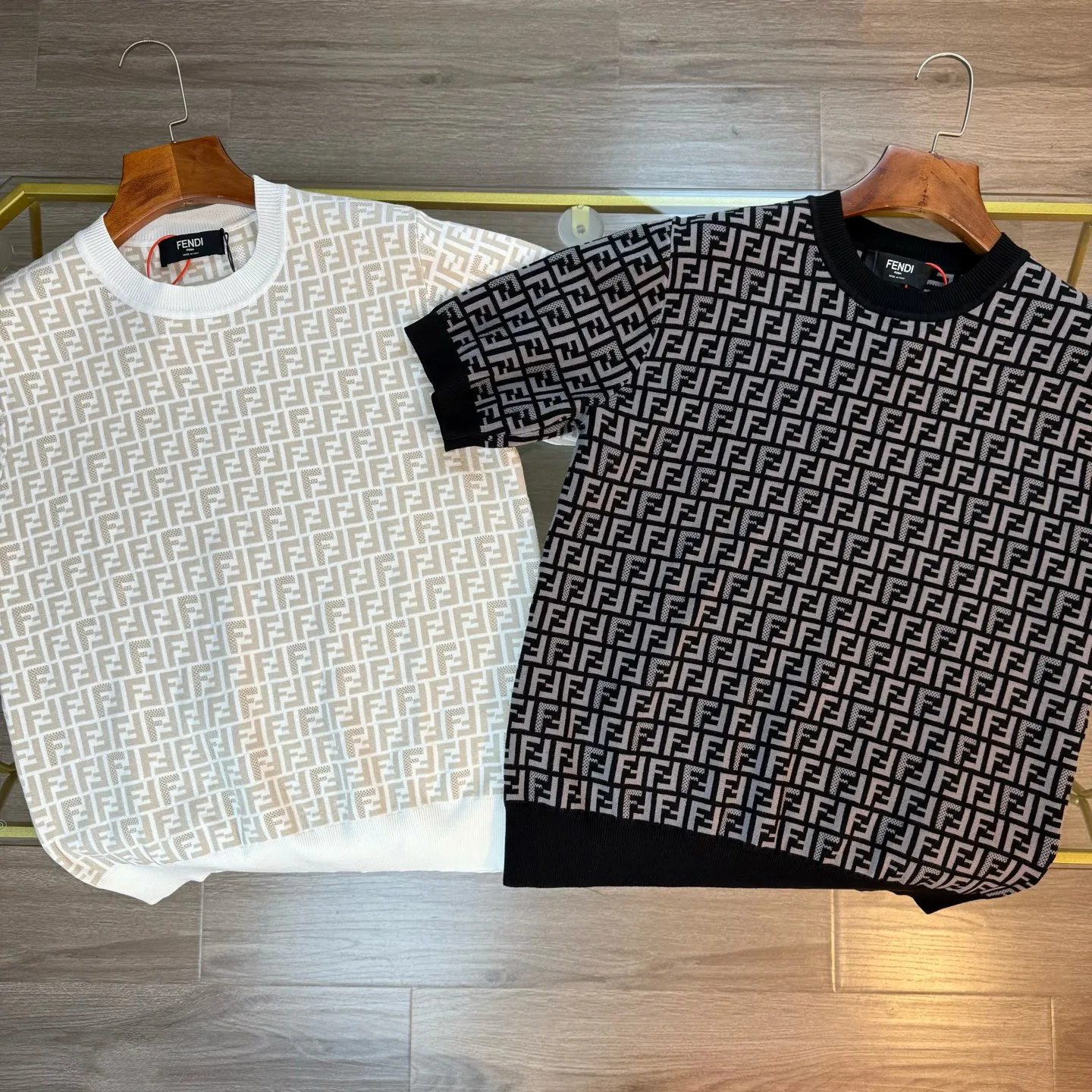 Premium Fendi Kurzarm Schwarzer Strick Jacquard Stil