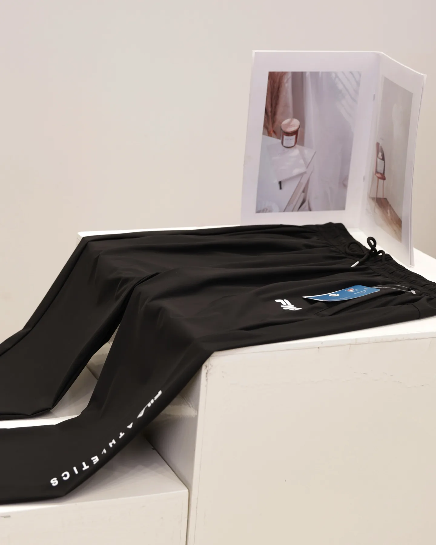 Hier sind einige Fotos der offiziellen FILA Herren-Freizeithose aus schnelltrocknender Ice Silk. Diese schnelltrocknende, feuchtigkeitsableitende Stretch-Eisseidenhose ist ein Must-have für Männer im Sommer!