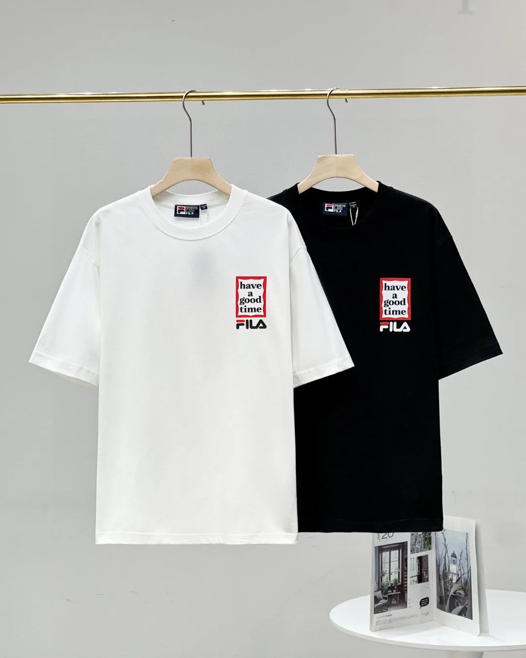 FILA x HAGT Kollaboration, Love and Freedom Print, lässiges, locker sitzendes Kurzarm-T-Shirt für Paare