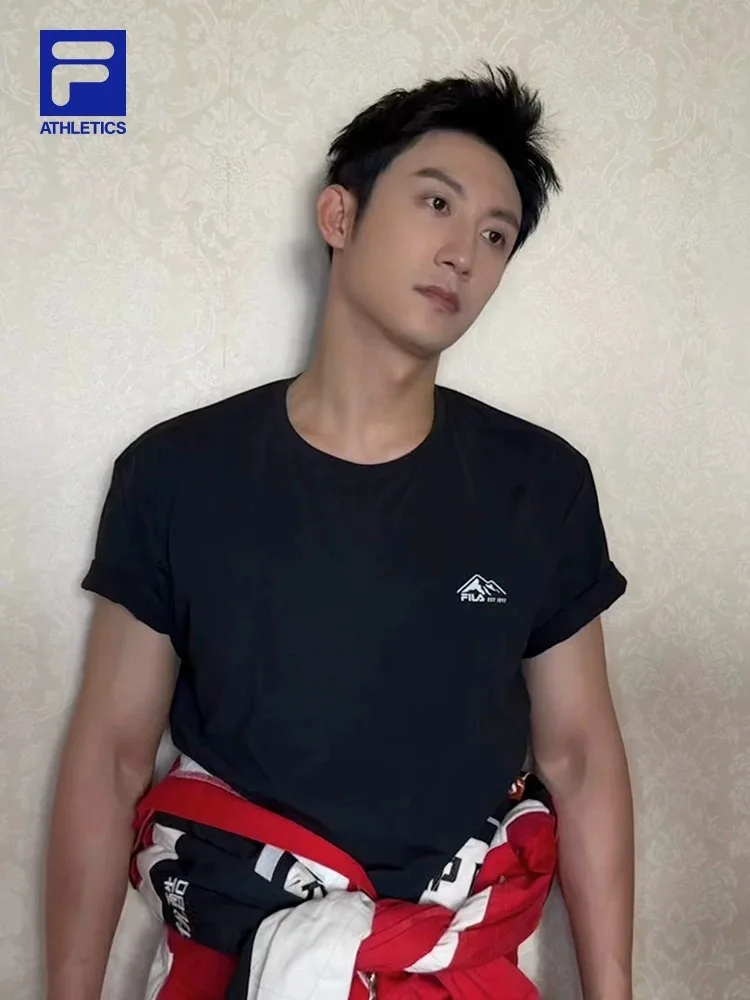 P-Yus Lieblings-Kurzarm-T-Shirt mit FILA-Schneeberg-Print.