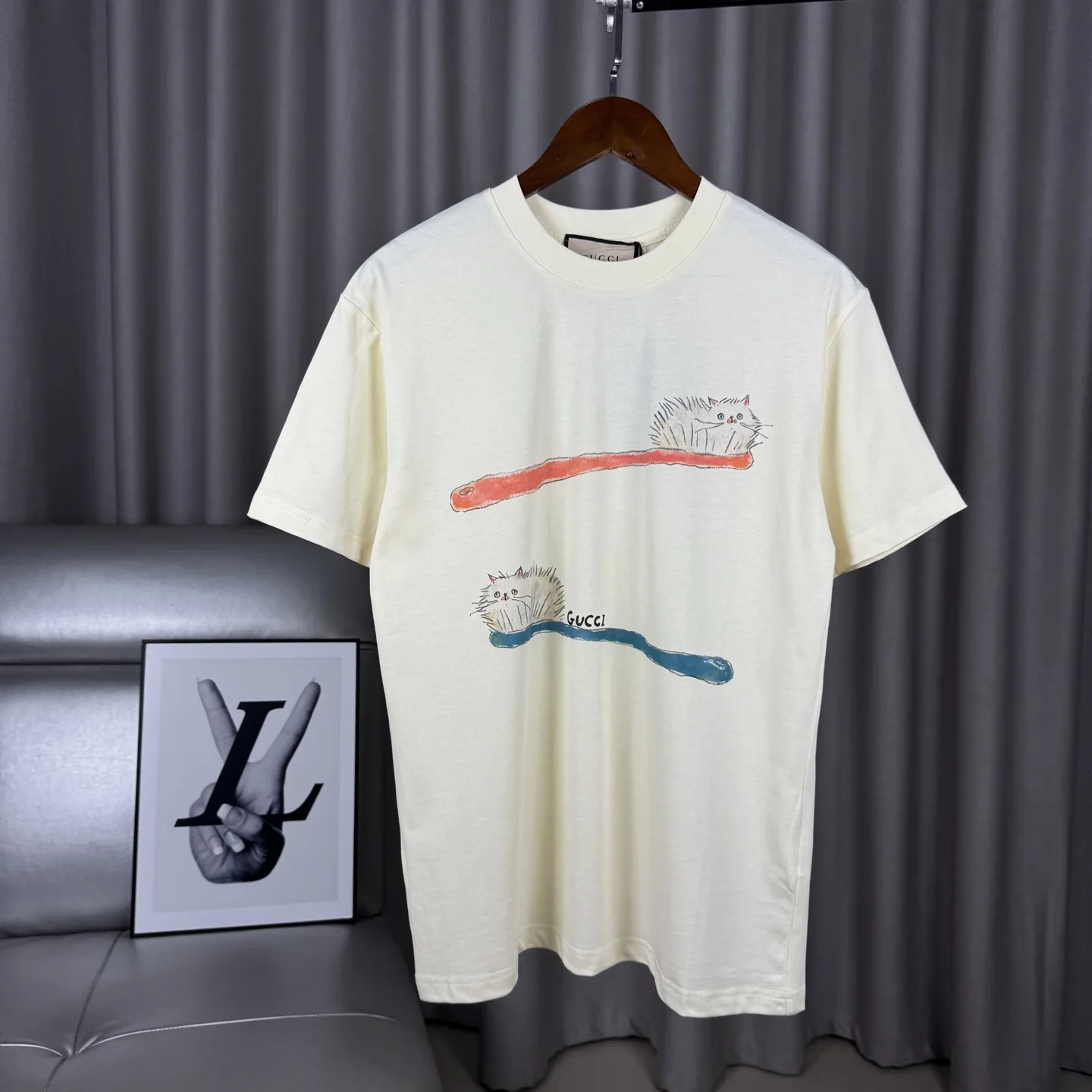 Gucci Limited Edition Animal Collection – Rotes Kurzarm-Unisex-T-Shirt mit Rundhalsausschnitt und Bluetooth-Kätzchen-Print