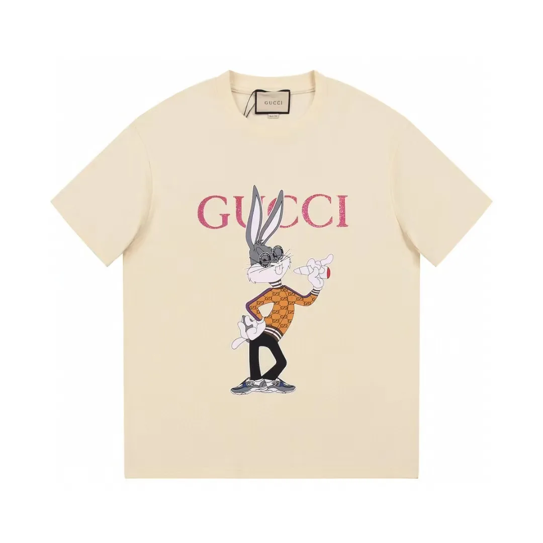 GDucci/Gucci Limited Edition Kurzarmshirt mit Bunny-Glitzerprägung. Mit verspieltem Bunny-Motiv und glitzergeprägtem Schriftzug auf der Brust. Aus hochwertiger, dicht gekämmter Baumwolle. Unisex.