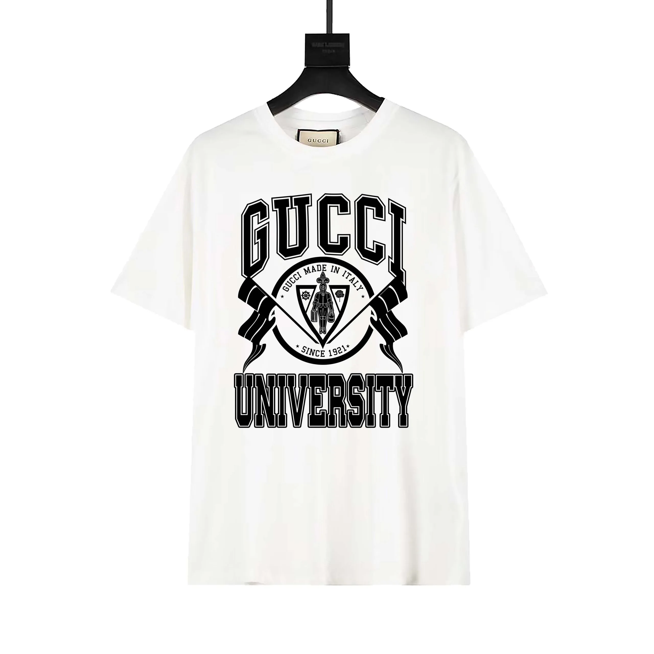 Kurzarm-T-Shirt mit GDucci/Gucci GDUC-Badge-Print. Dieses T-Shirt aus reiner GD-Baumwolle wird vor dem Zuschneiden bei hohen Temperaturen gewaschen, um die Form zu fixieren. Das fertige Produkt wird anschließend erneut gewaschen, um ein weiches, hautfreundliches Tragegefühl mit natürlichem Fall zu erhalten. Erhältlich im selben Store wie das T-Shirt, ist dieser lockere Schnitt mit leicht überschnittenen Schultern perfekt für Damen und Herren und passt sowohl zu lässigen als auch zu eleganten Looks.
