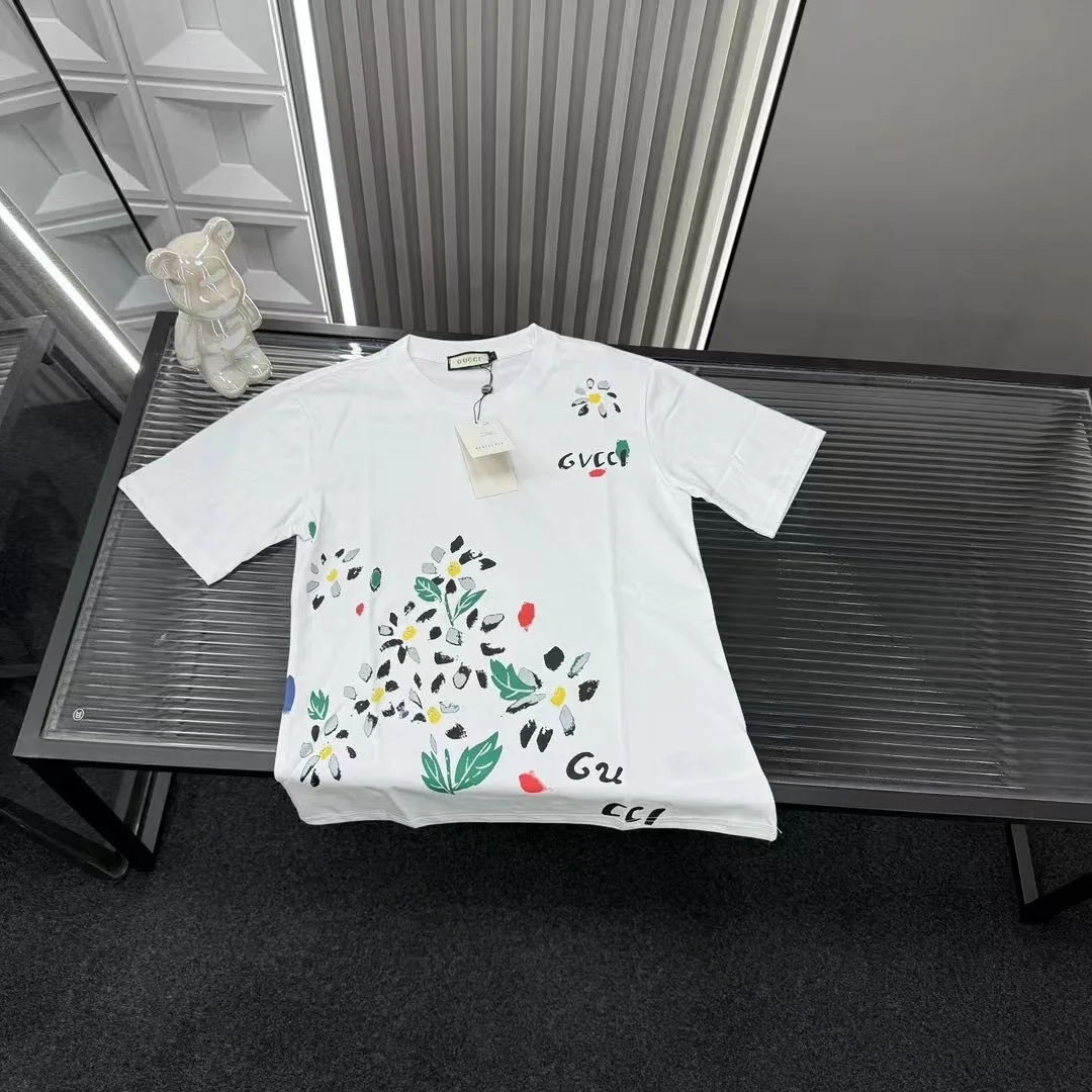 Premium Gucci Kurzarm-Stil mit weißem Druck