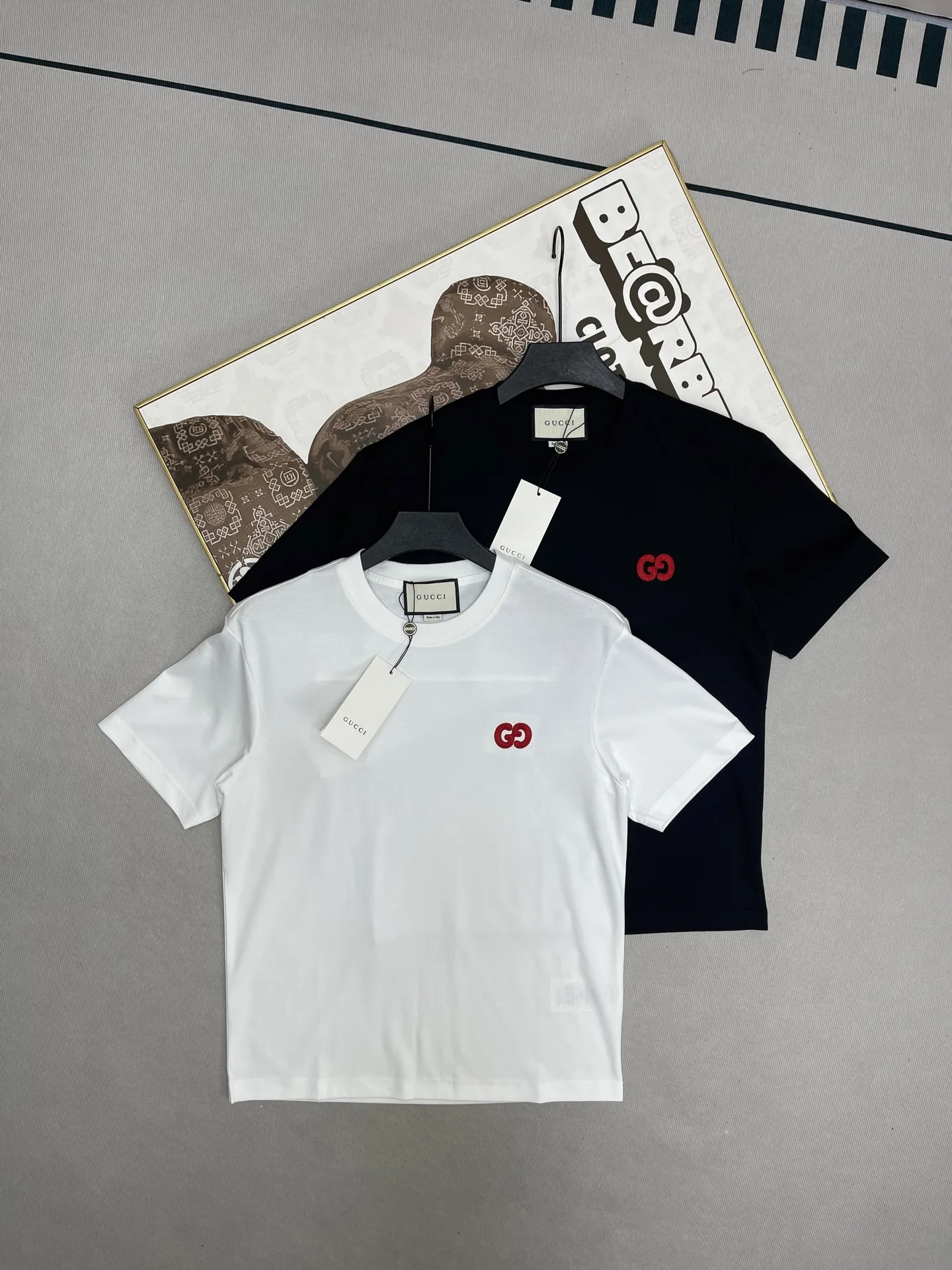 Gucci Classic Logo-Stickerei, Rundhalsausschnitt, Kurzarm-T-Shirt für Paare mit Webband – Erstklassige Qualität