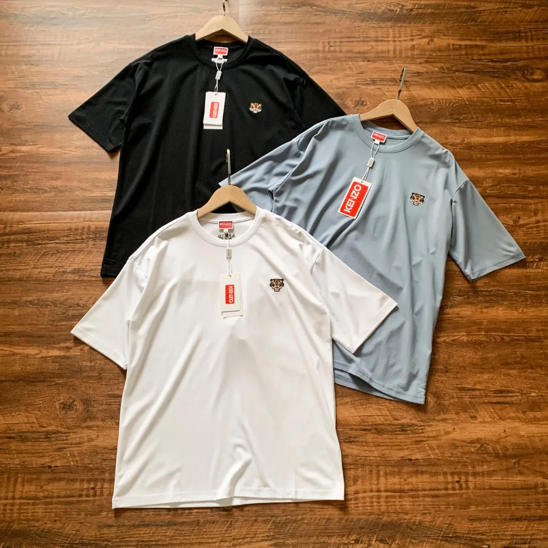 KENZO Herren T-Shirt mit Tigerkopf-Stickerei, stylisch, lässig, Rundhalsausschnitt, kurzärmlig, PTSSG