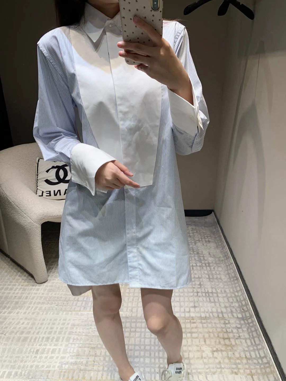 Dieses lange, locker geschnittene Hemdblusenkleid mit Colorblock-Streifen von Loew* zeichnet sich durch Strukturalismus, Patchwork und Asymmetrie aus, ergänzt durch minimalistische Designtechniken. Es erforscht die Beziehung und Transformation von Kleidungsstücken in verschiedenen Räumen. Es bietet einen trendigen und modischen Look, neutral und doch feminin. Kombinieren Sie es mit jeder Hose aus Ihrer Garderobe für einen entspannten Look.