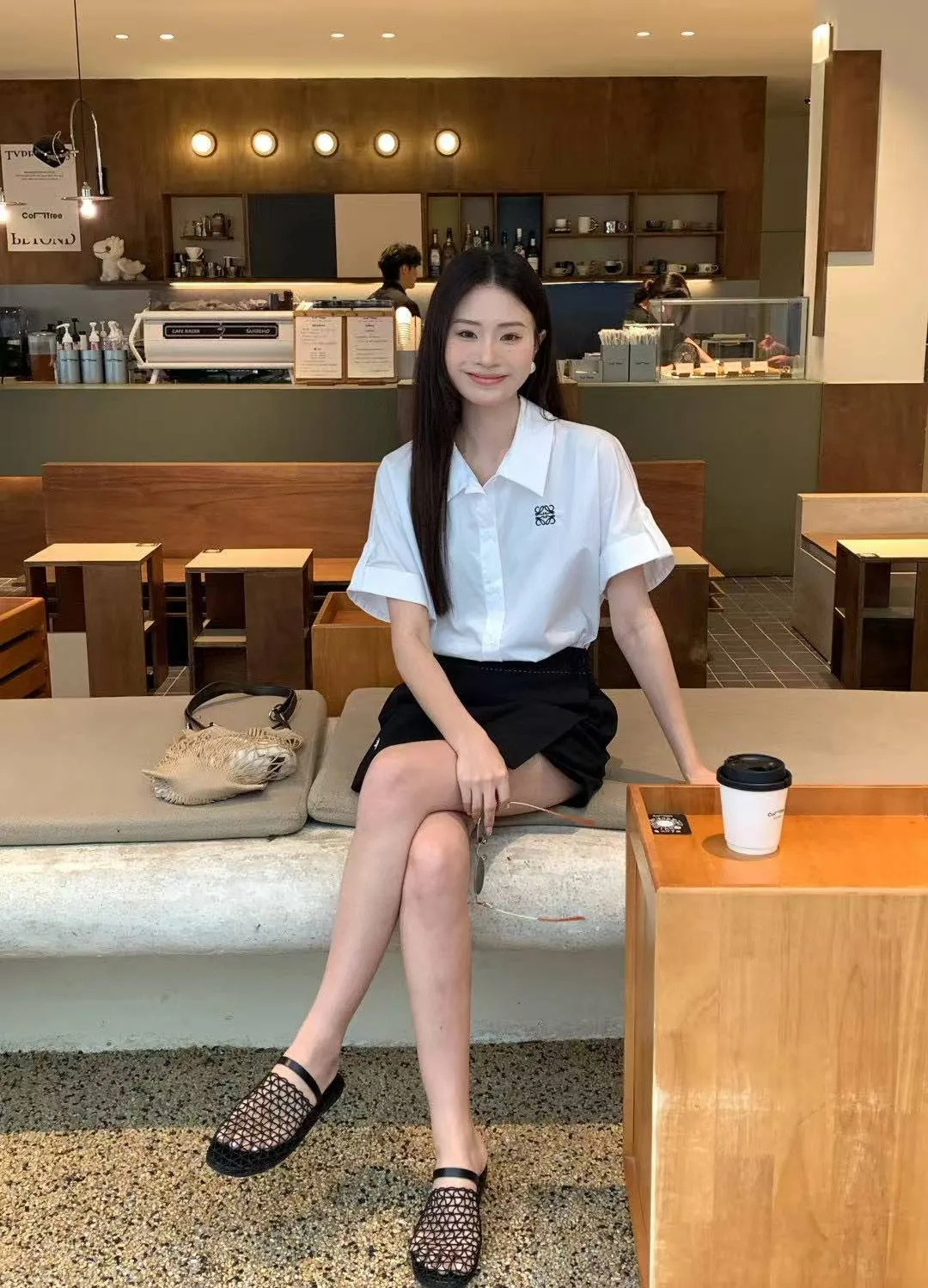 LOEWE Bluse mit Schleifendesign hinten. Überschnittene Schultern, gerader Schnitt, Logo-Stickerei auf der Brust und eine stilvolle Schleife hinten.