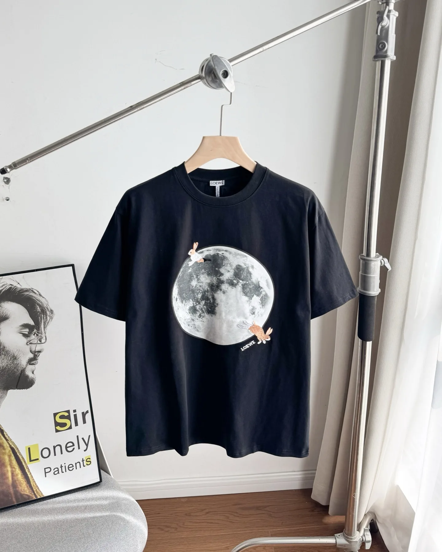 Loewes neues, lässiges, kurzärmeliges T-Shirt mit Rundhalsausschnitt und Stickerei mit Hasen- und Mond-Print