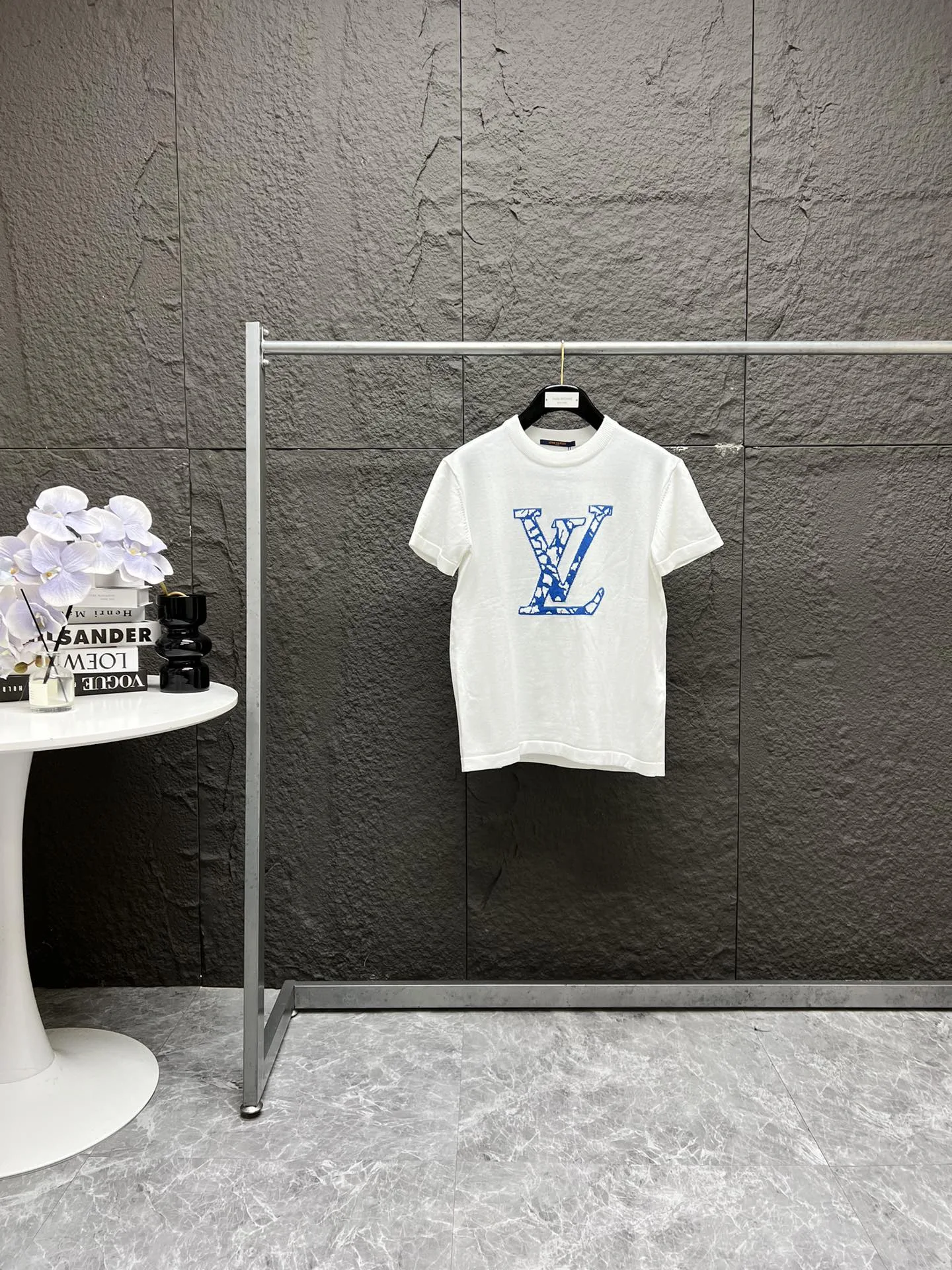 Neues Louis Vuitton Jacquard-Muster im blauen Camouflage-Look mit großem Logo. Lässiges, locker sitzendes, kurzärmeliges Strick-T-Shirt für Paare. Einzigartig gefärbt mit einem reaktiven, umweltfreundlichen Stoff. Hergestellt aus hochwertiger Baumwolle für ein geschmeidiges Tragegefühl und Pillingfreiheit. Garantierte Qualität, Originalstoff, individuell gefärbt. Vergleichen Sie gerne. Unisex-Style!