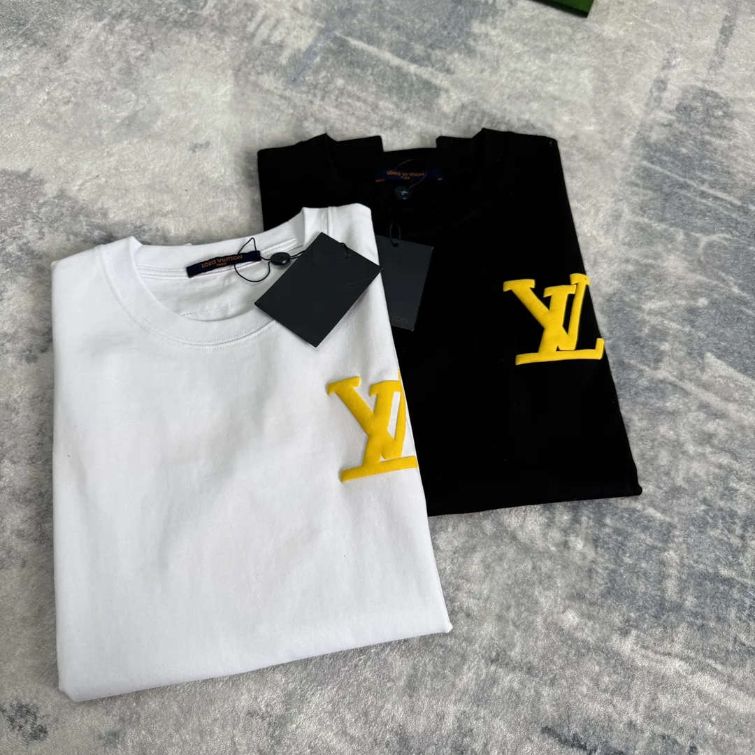Die lockere Passform entspricht den aktuellen Modetrends, und die überschnittenen Schultern betonen die Schultern gekonnt und verleihen dem Shirt eine elegante und anmutige Ausstrahlung. Die leuchtend gelbe Farbe in Kombination mit dem stilvollen Kleeblatt-Print ist einzigartig und ein Blickfang und unterstreicht den unverwechselbaren Stil von Louis Vuitton. Ob beim Bummel durch die belebten Straßen oder auf einer schicken Party – mit diesem Shirt fallen Sie garantiert auf.