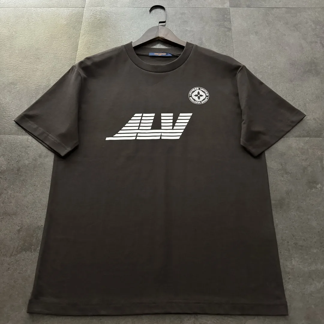 Premium Louis Vuitton Kurzarm-Grafikkollektion aus grauem Leinen
