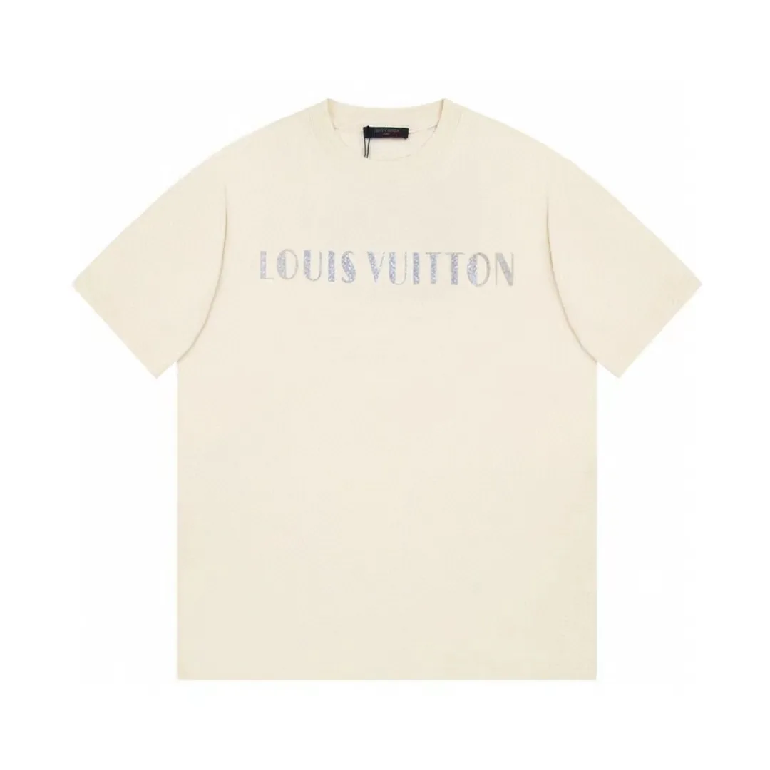 – LV/Louis Vuitton Limited Edition Show-Show Edition, hochwertiger versilberter Schriftzug, Kurzarm-T-Shirt mit weißem Prägemuster, Neuerscheinung auf der offiziellen Website